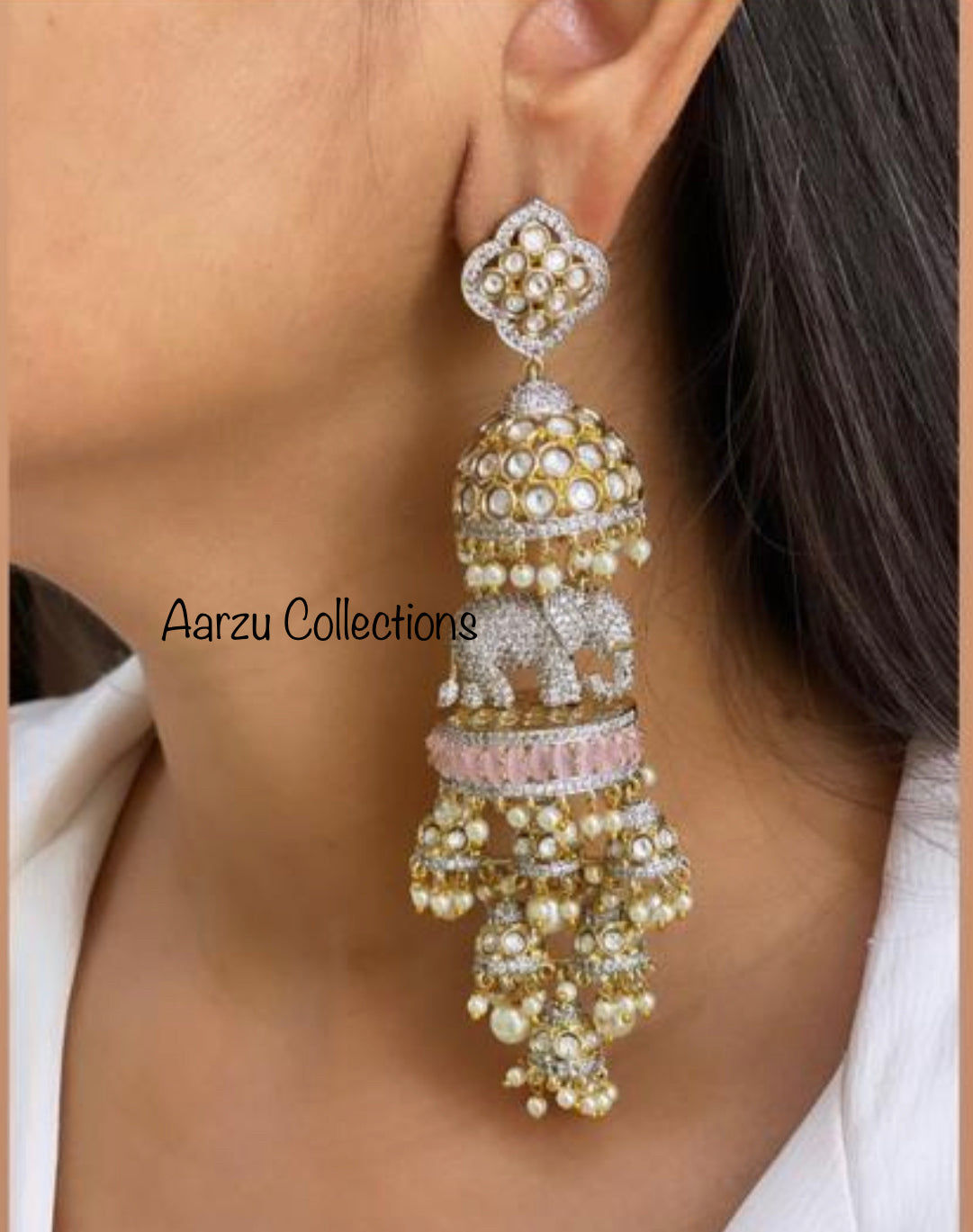 Kundan and American Diamond Statement Jhumkas - 5 inch