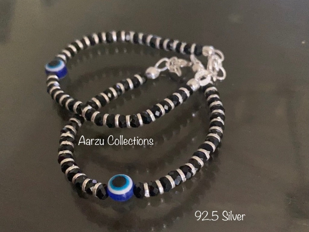 92.5 Silver Baby black bead evil eye bracelet set of two - 7 gms