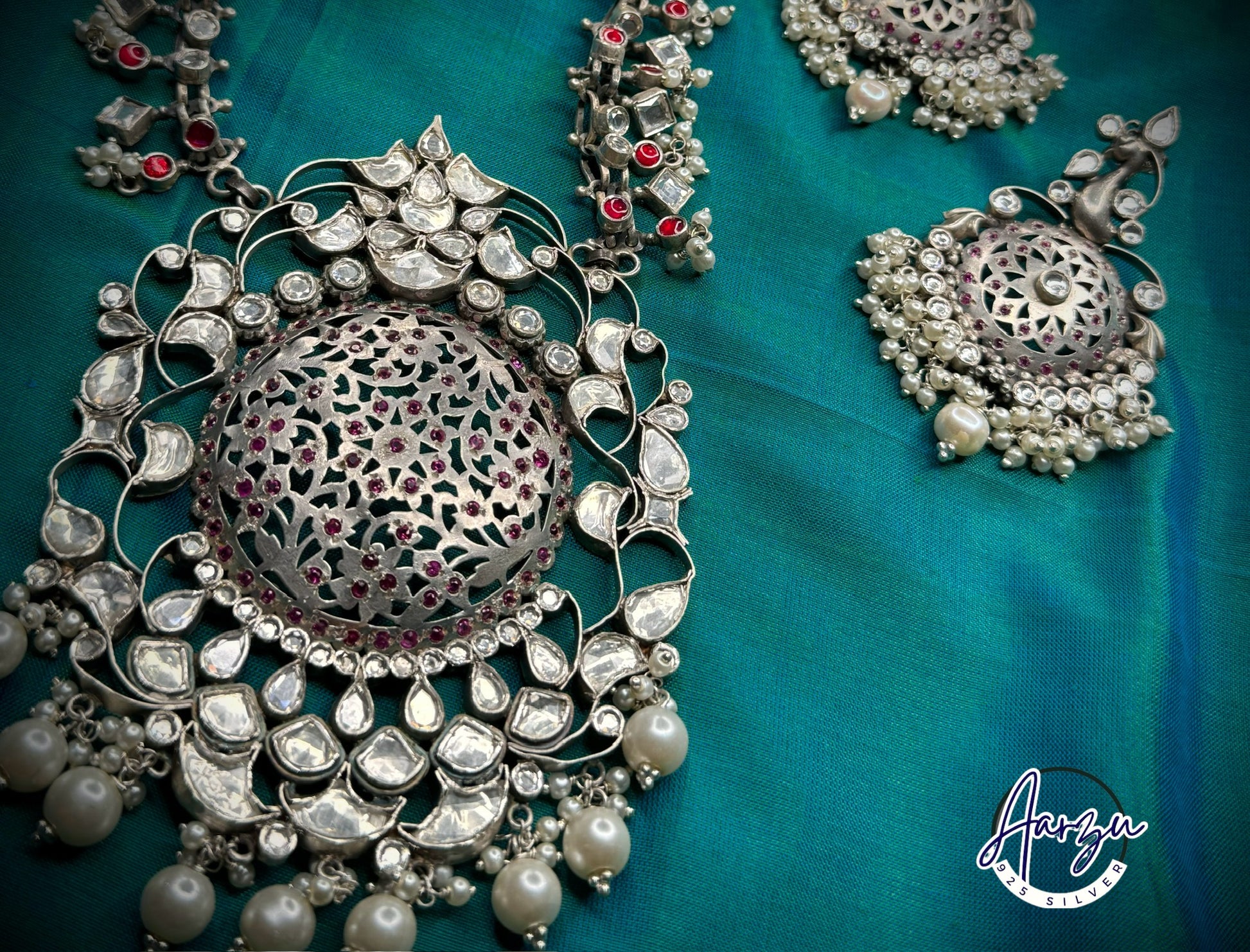 92.5 Silver base designer inspired kundan necklace set