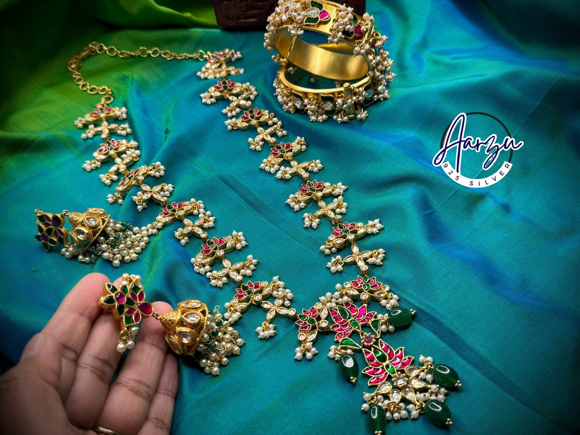 92.5 Silver base designer inspired necklace, earrings and bangles