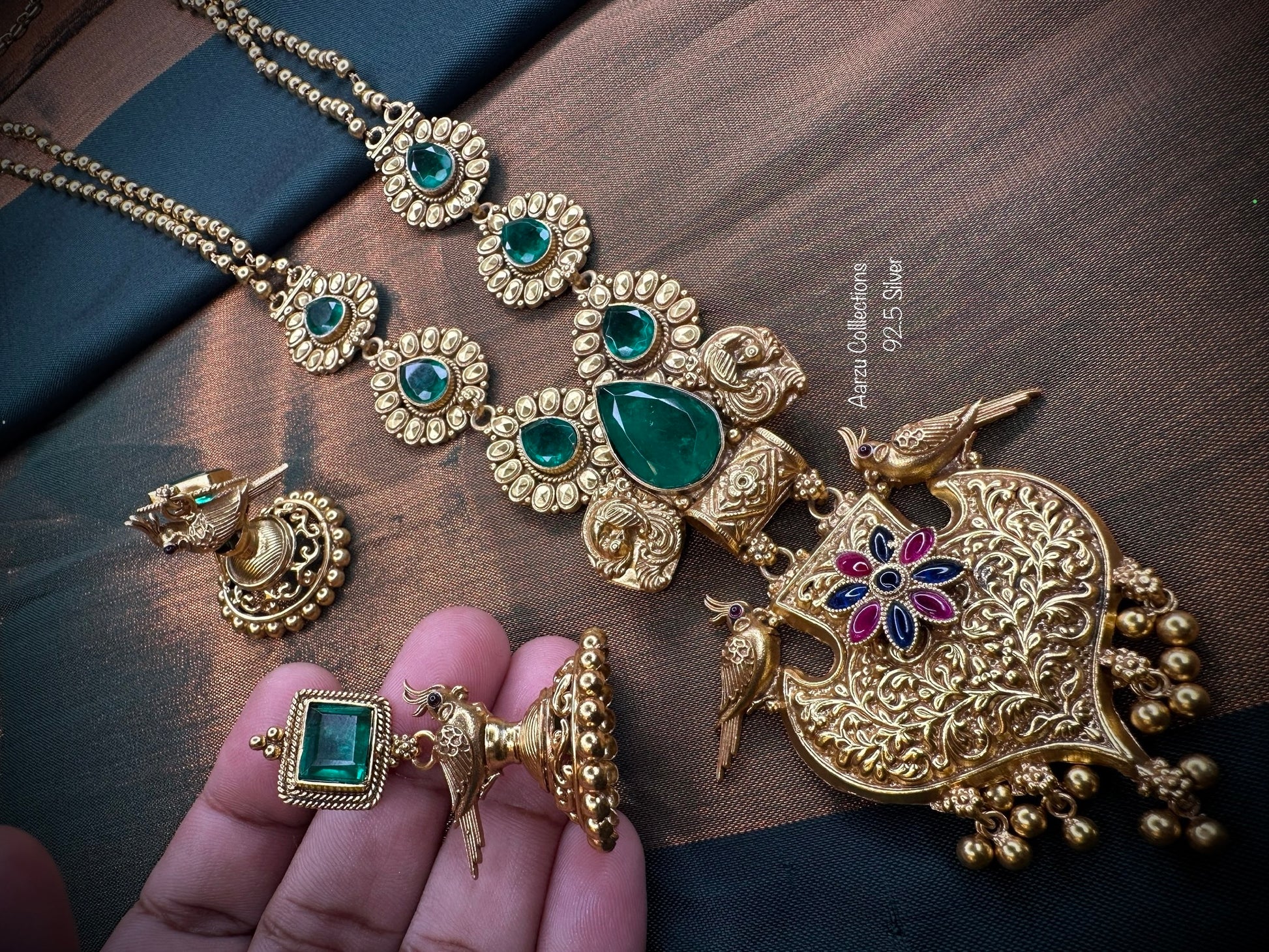 92.5 Silver base designer inspired necklace and earrings - 100 gm