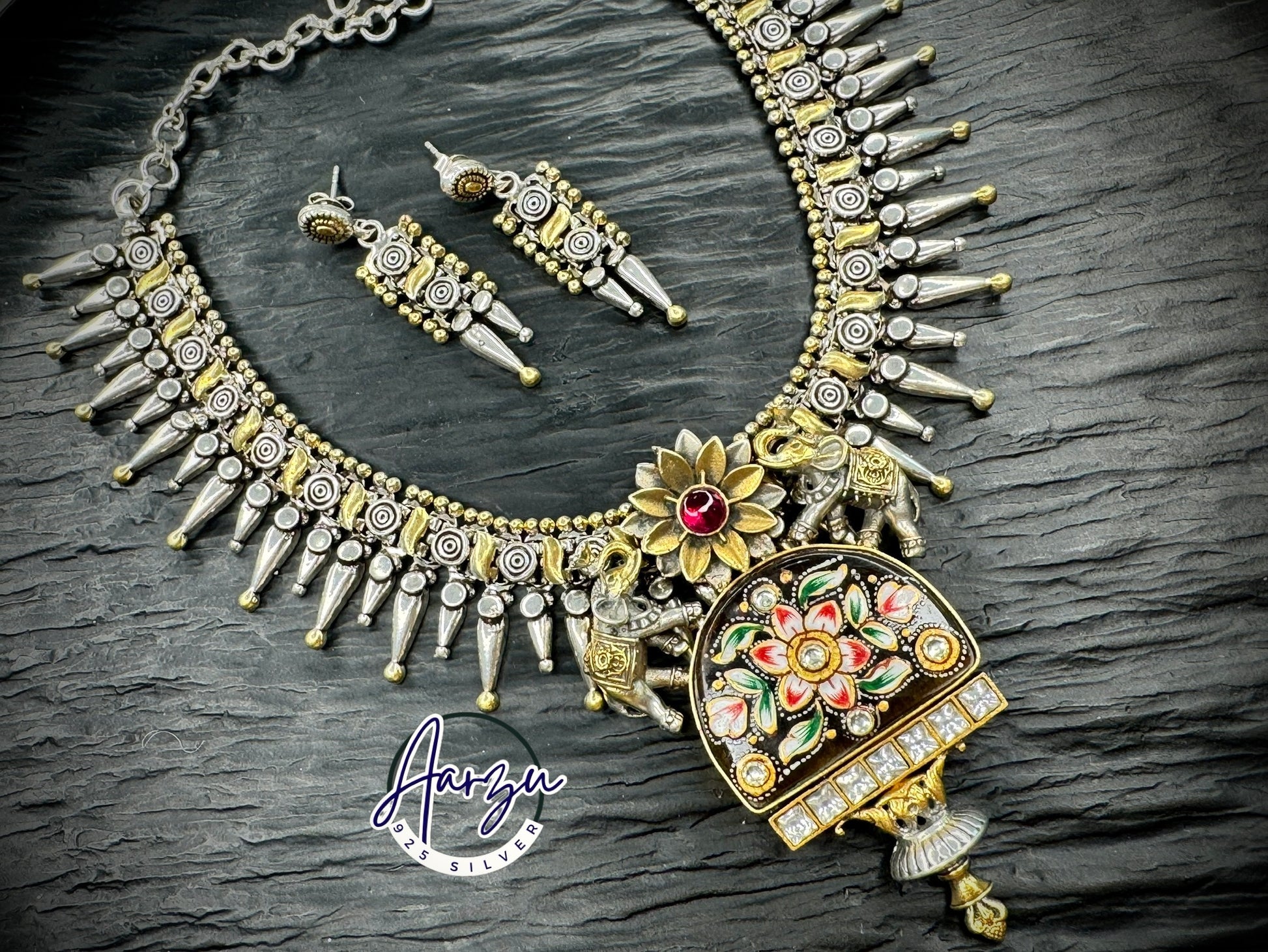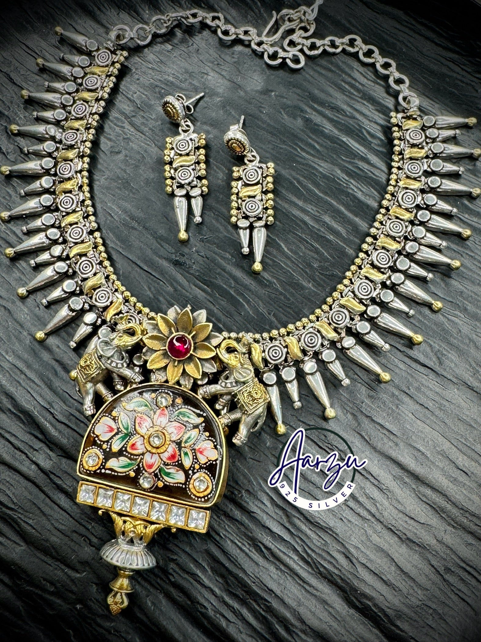 92.5 Silver base designer inspired necklace set