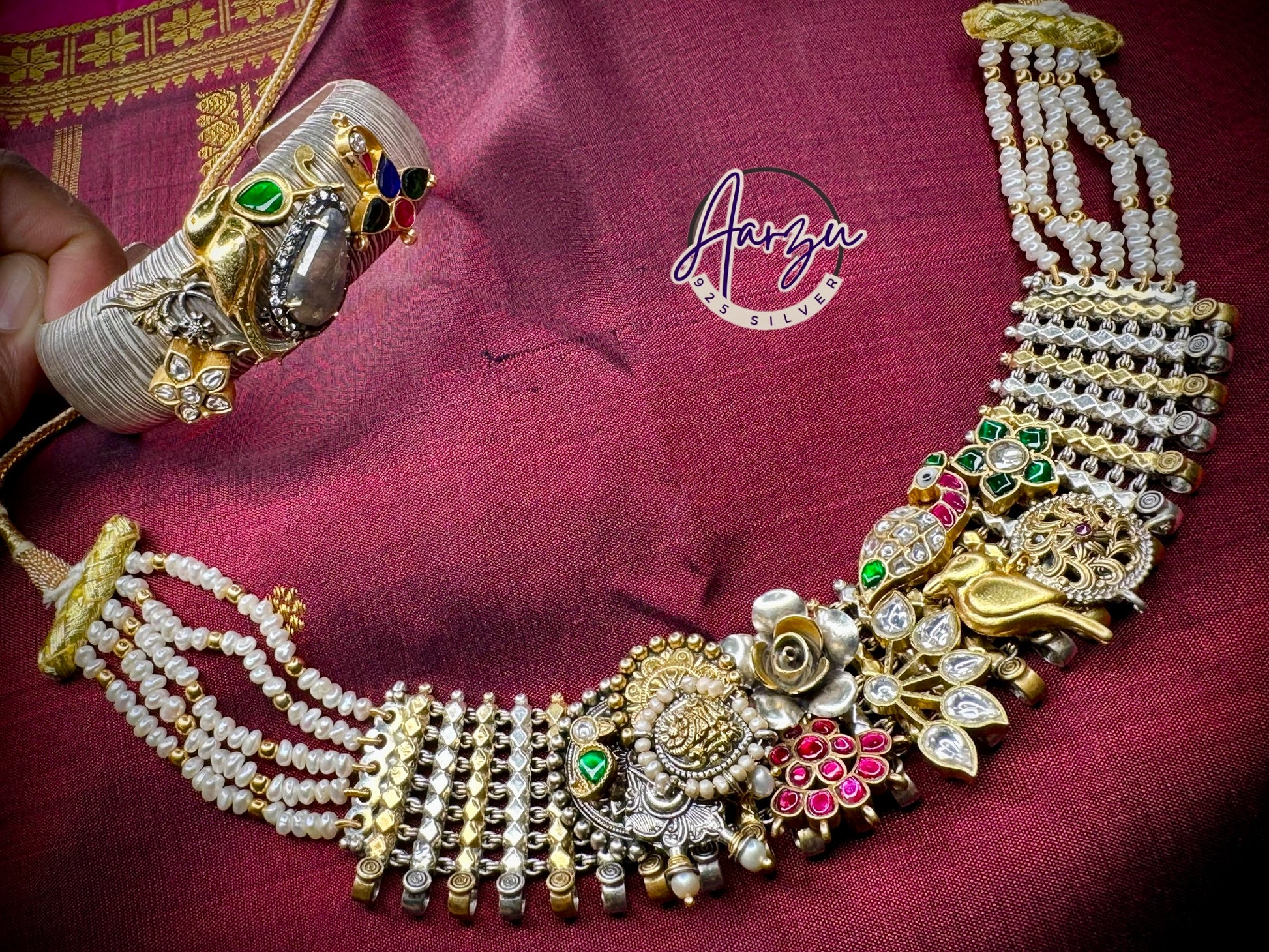 92.5 Silver base designer inspired necklace with matching fusion cuff