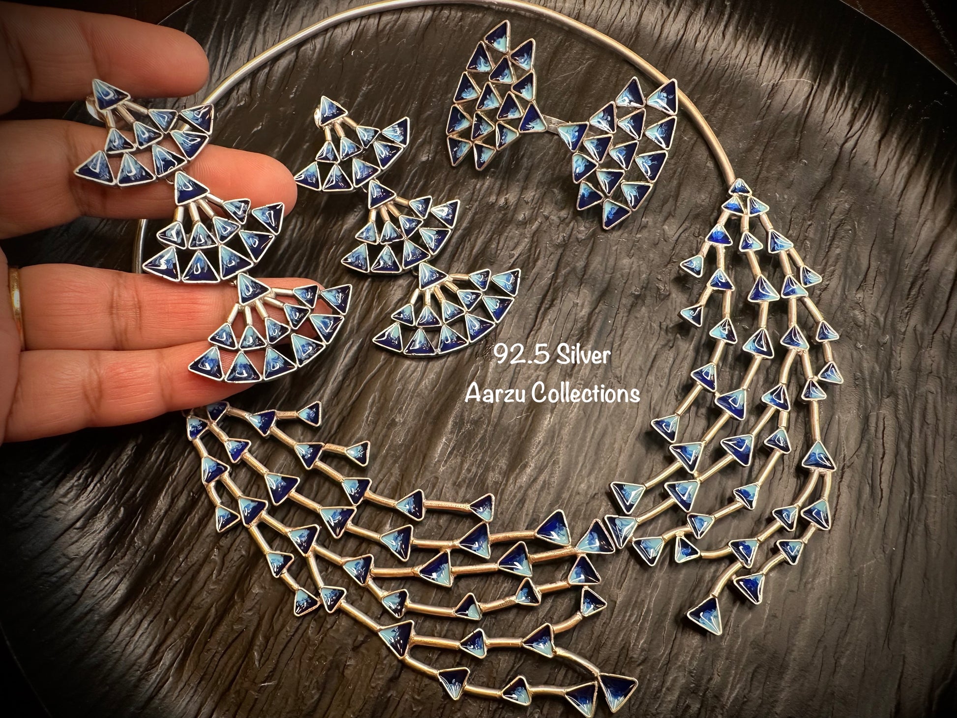 92.5 Silver base designer inspired set with hasli, earrings and ring