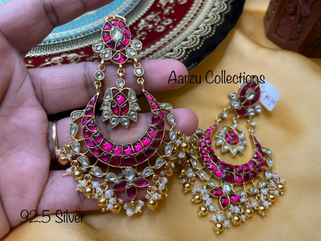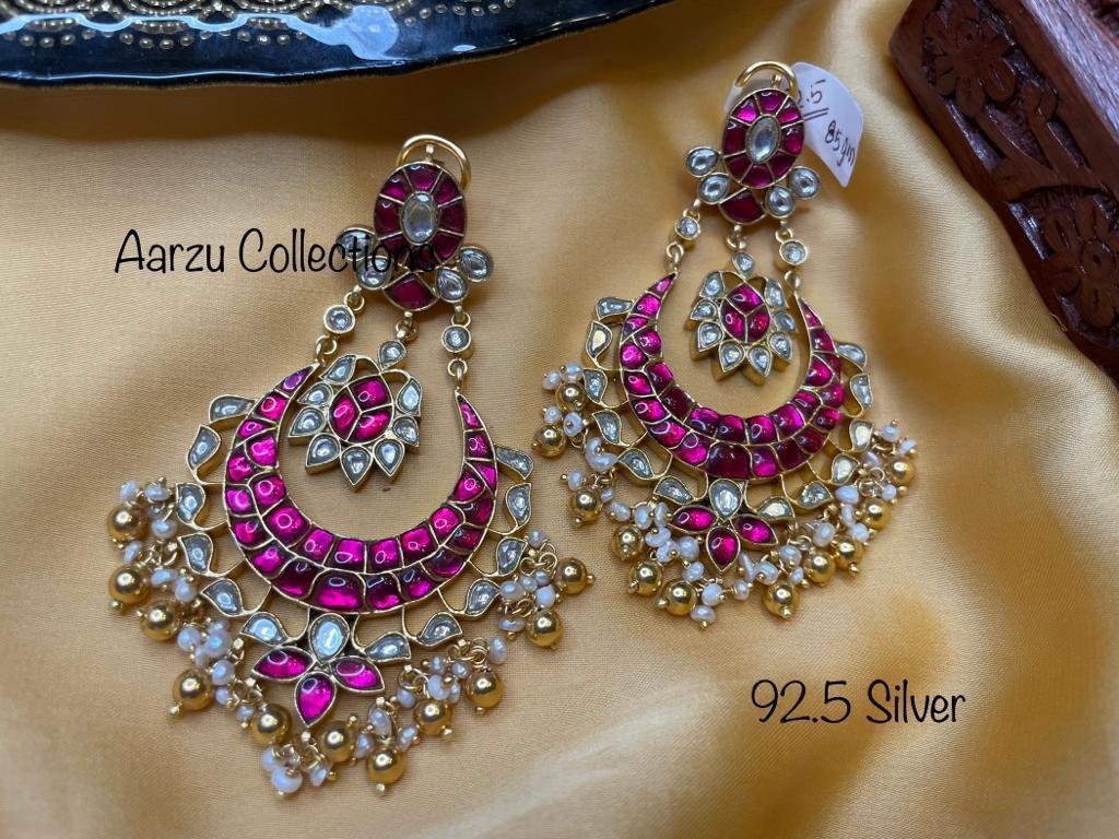 92.5 Silver base Kundan Jadau statement Chandbali -85gms