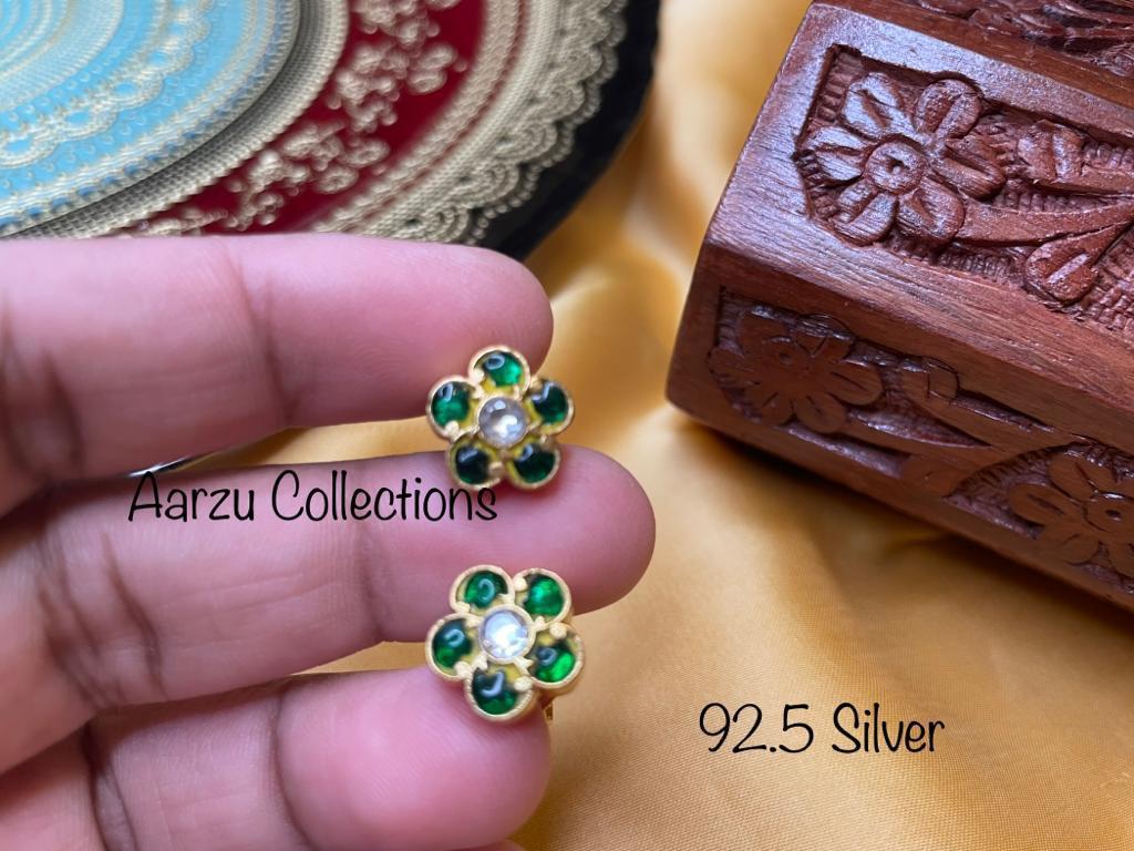 92.5 Silver base Kundan Jadau studs - 8 gms