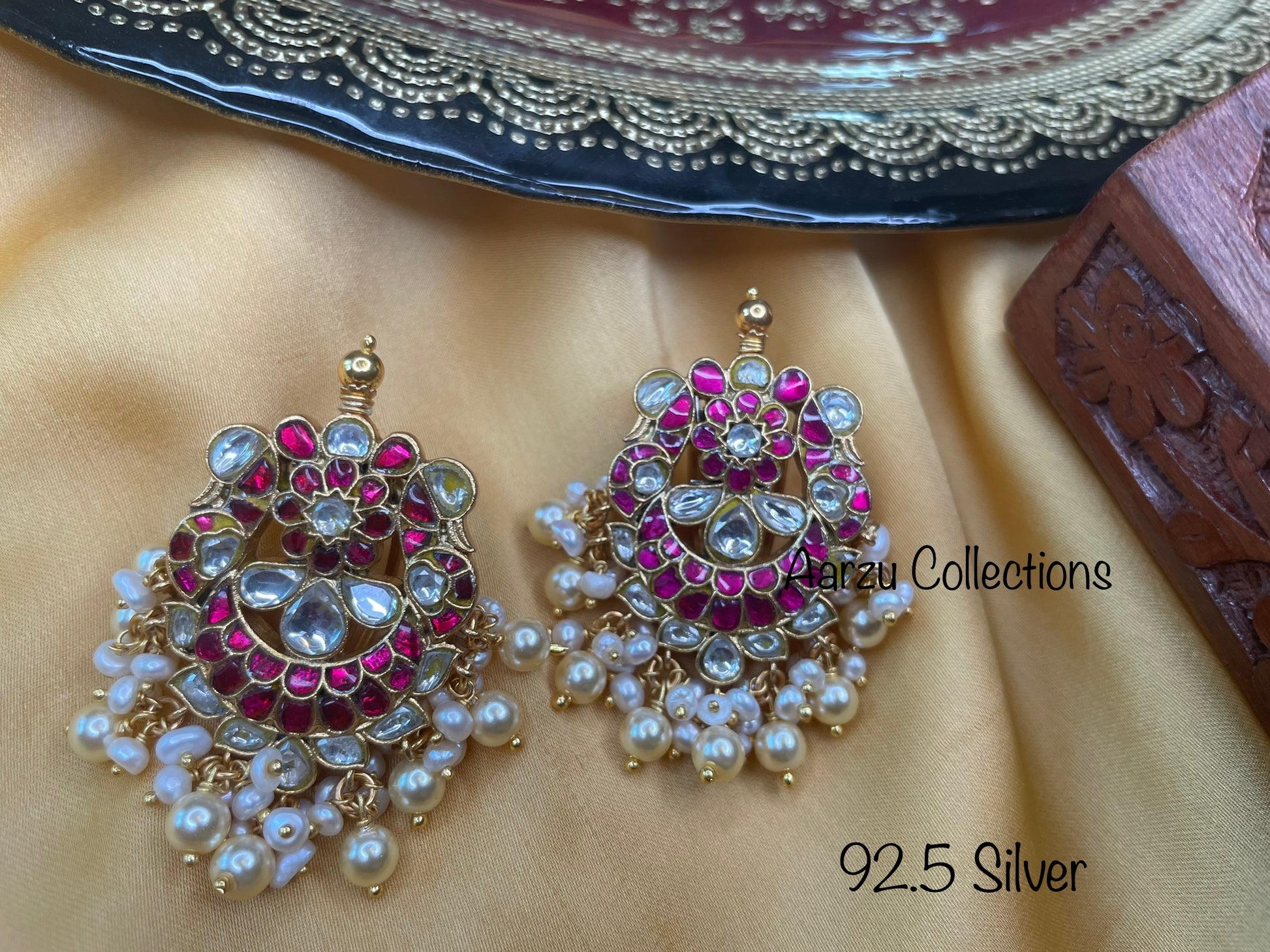 92.5 Silver base Kundan Jadau studs - 48 gms