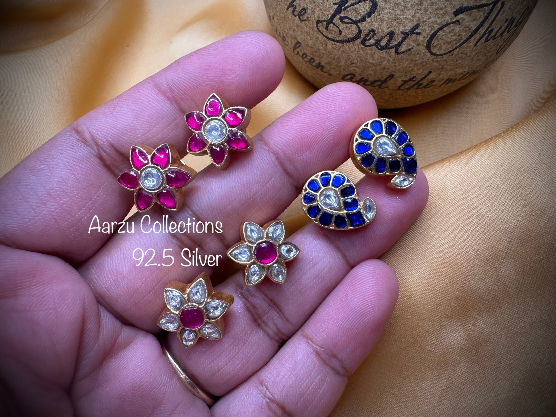 92.5 Silver base Kundan Jadau studs