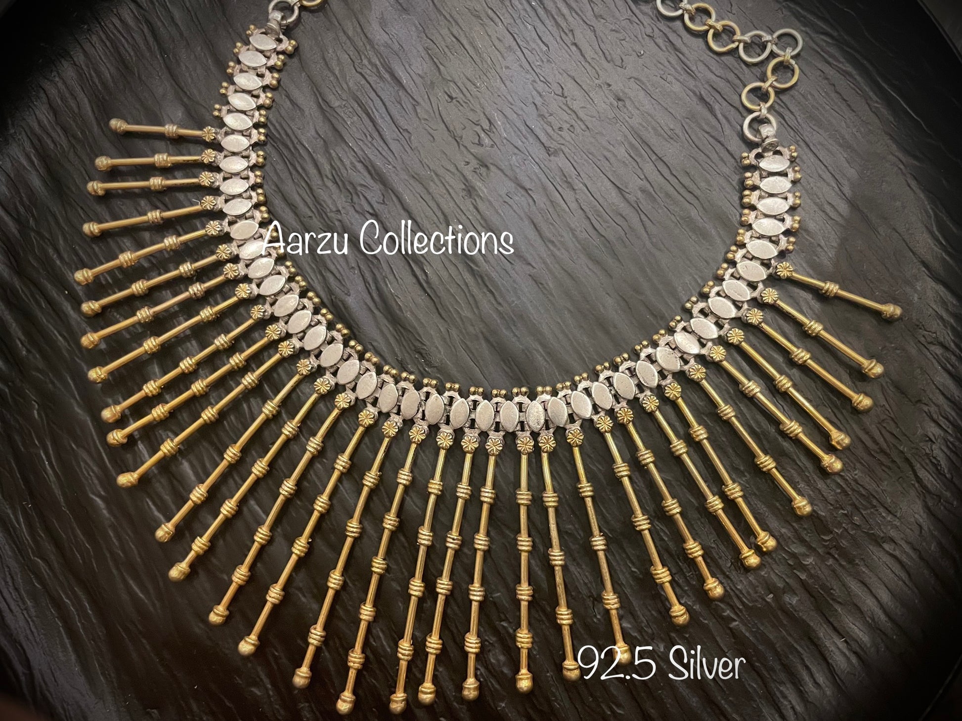 92.5 Silver contemporary dual tone spike necklace - 104 gms