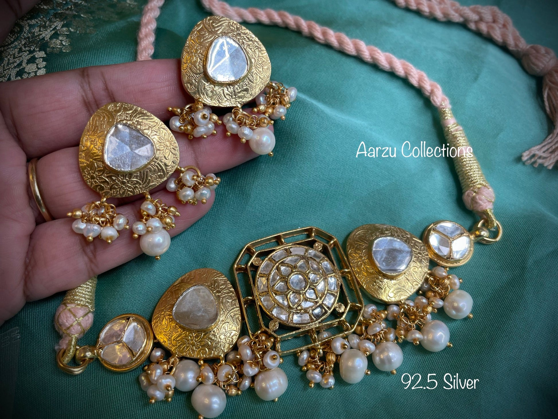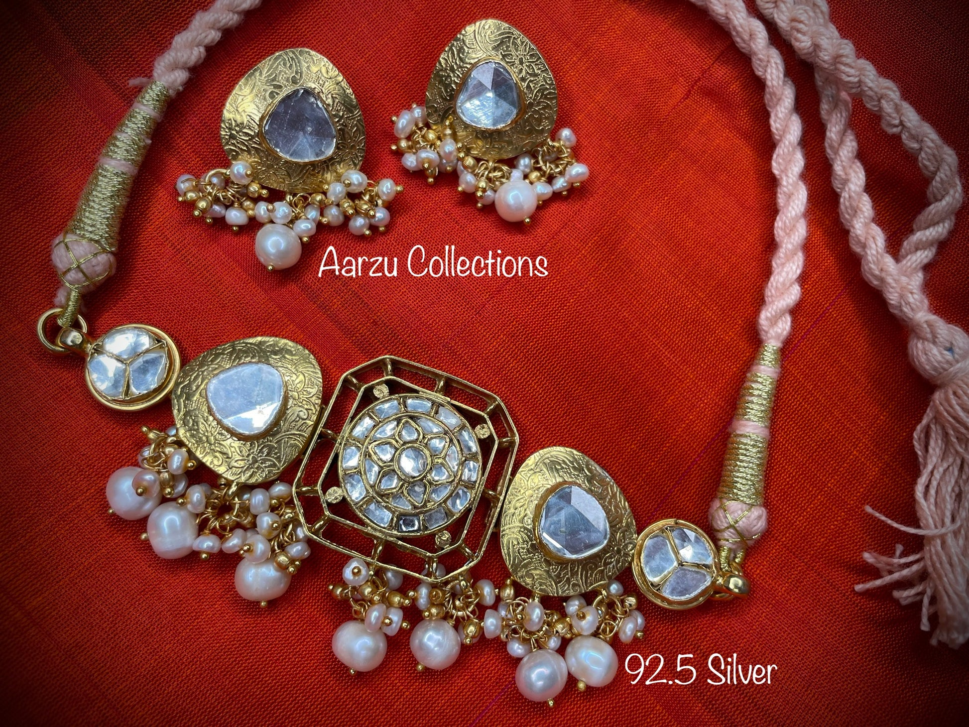 92.5 Silver designer inspired uncut kundan choker with earrings