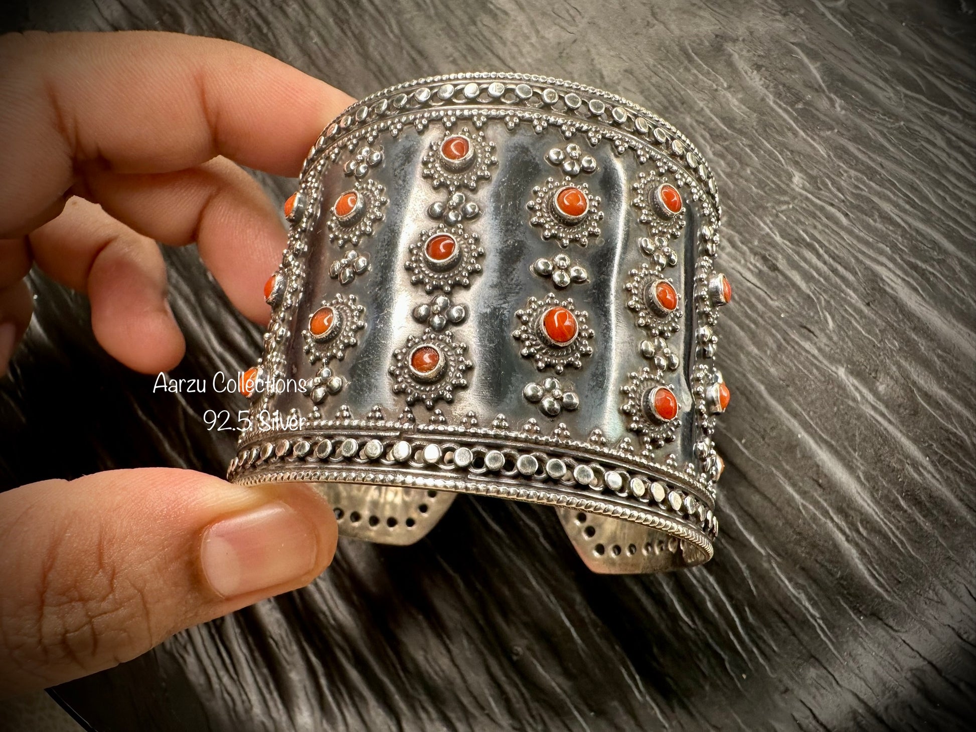 92.5 Silver coral studded designer kada/cuff