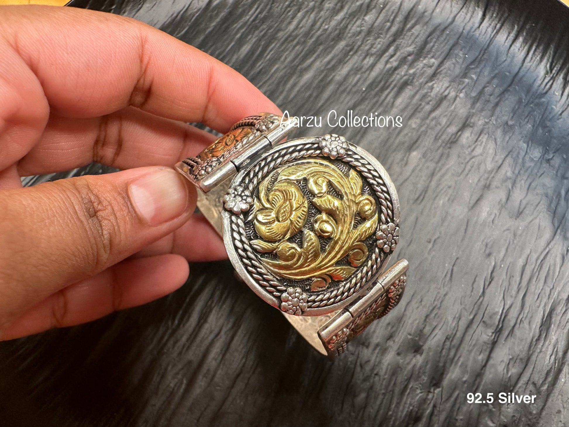 92.5 Silver Dual Tone Chitai Cuff - Msg to Restock