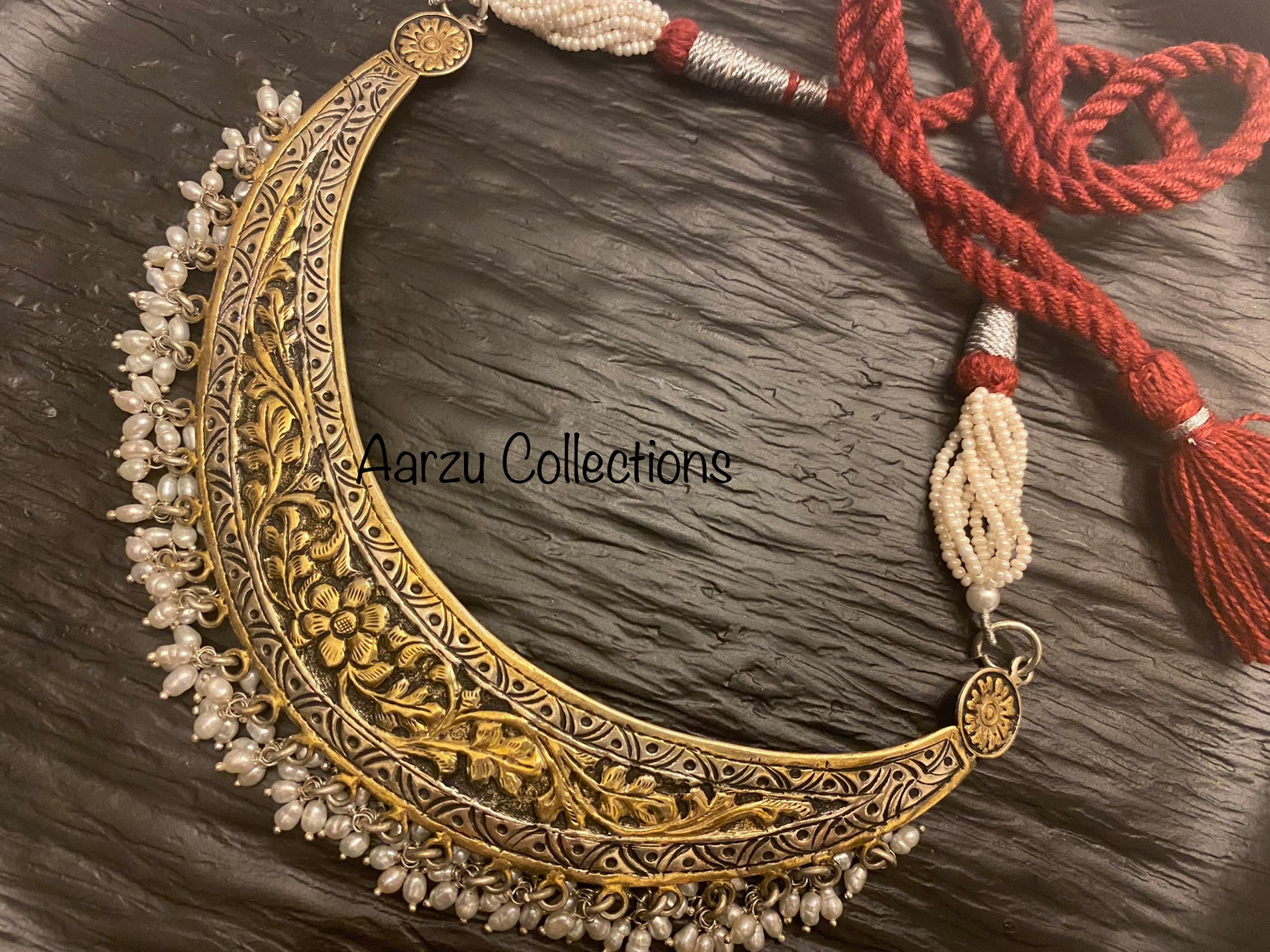 92.5 Silver Dual tone Chitai Moon necklace - 59 gms