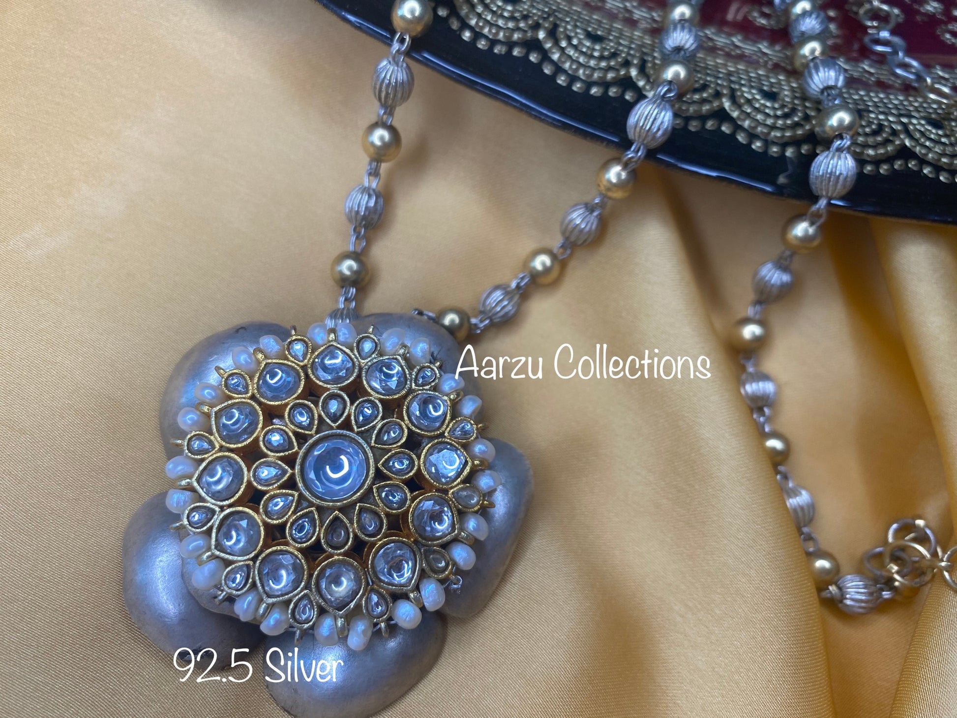 92.5 Silver dual tone pendant with dual tone matar mala - 77gms