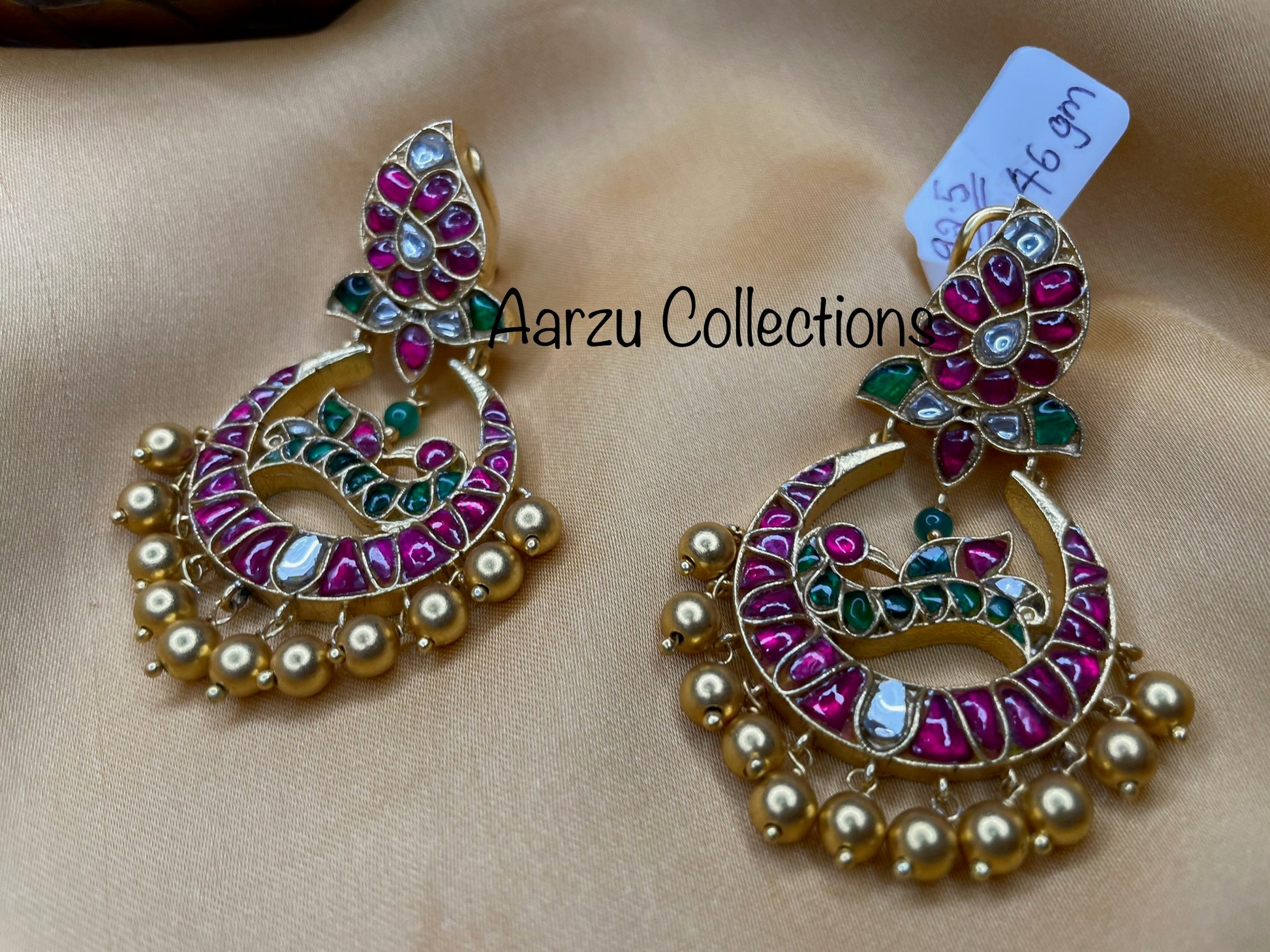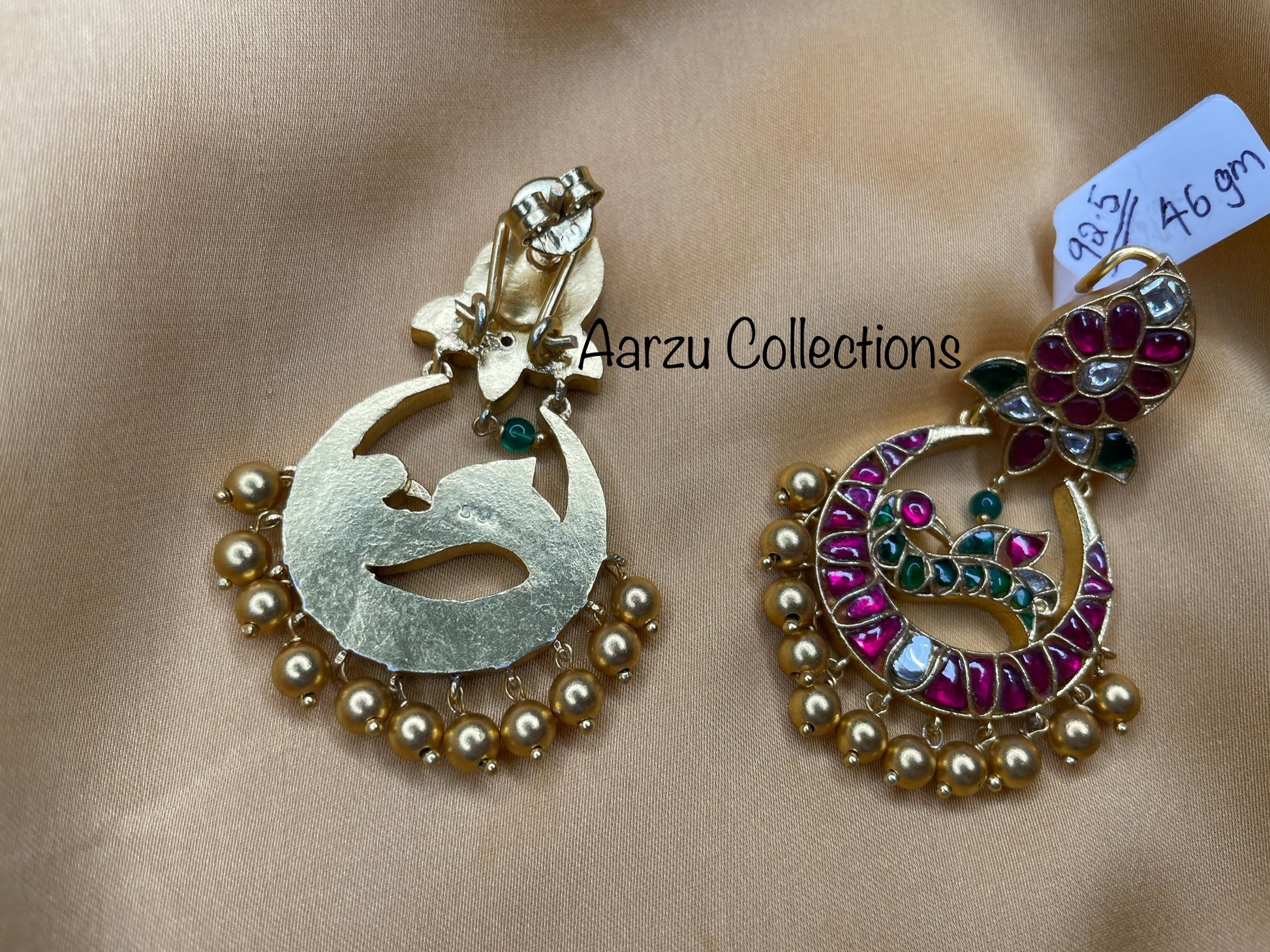 92.5 Jadau Silver Earrings with 22kt gold plating - 46 g
