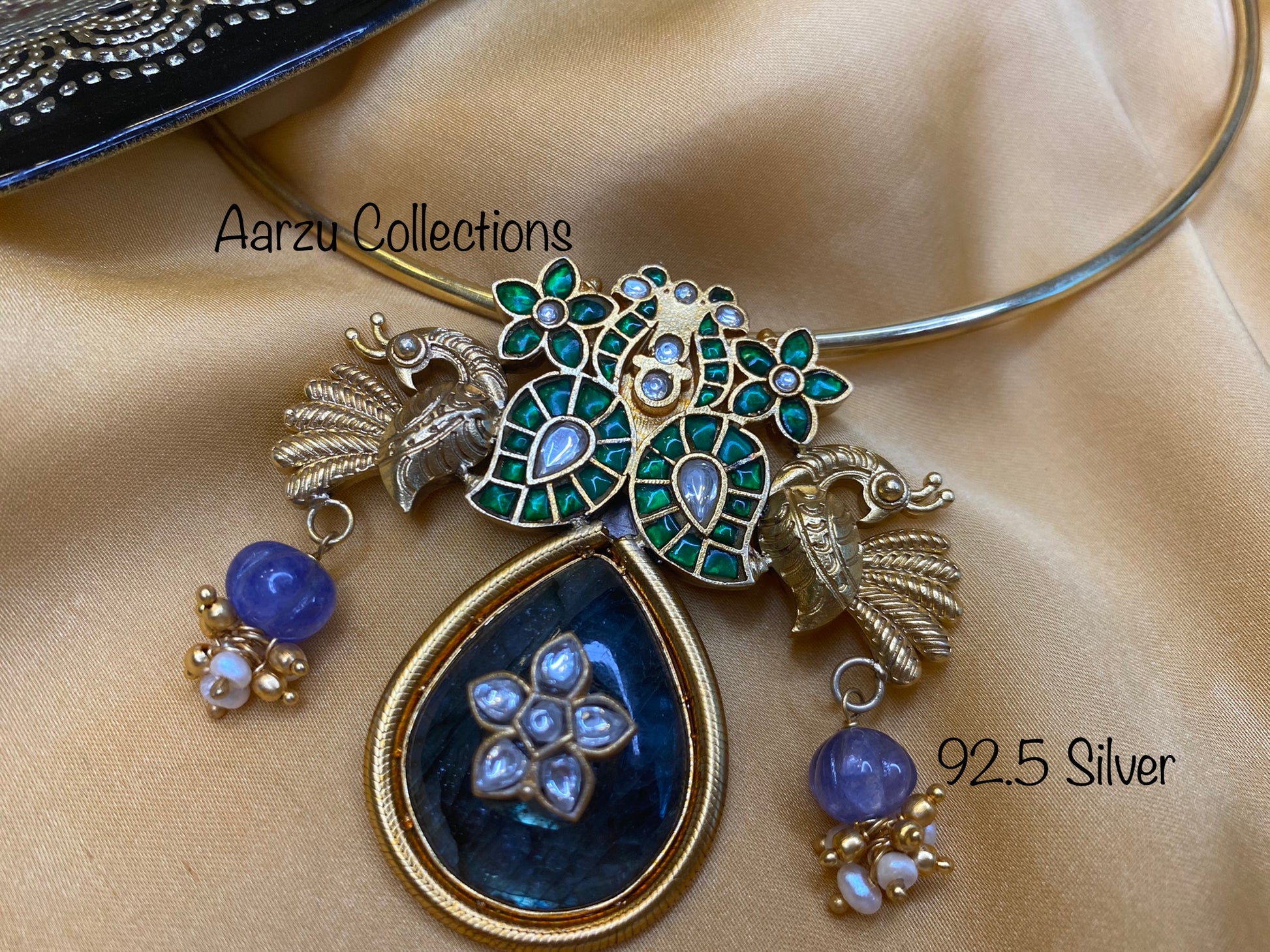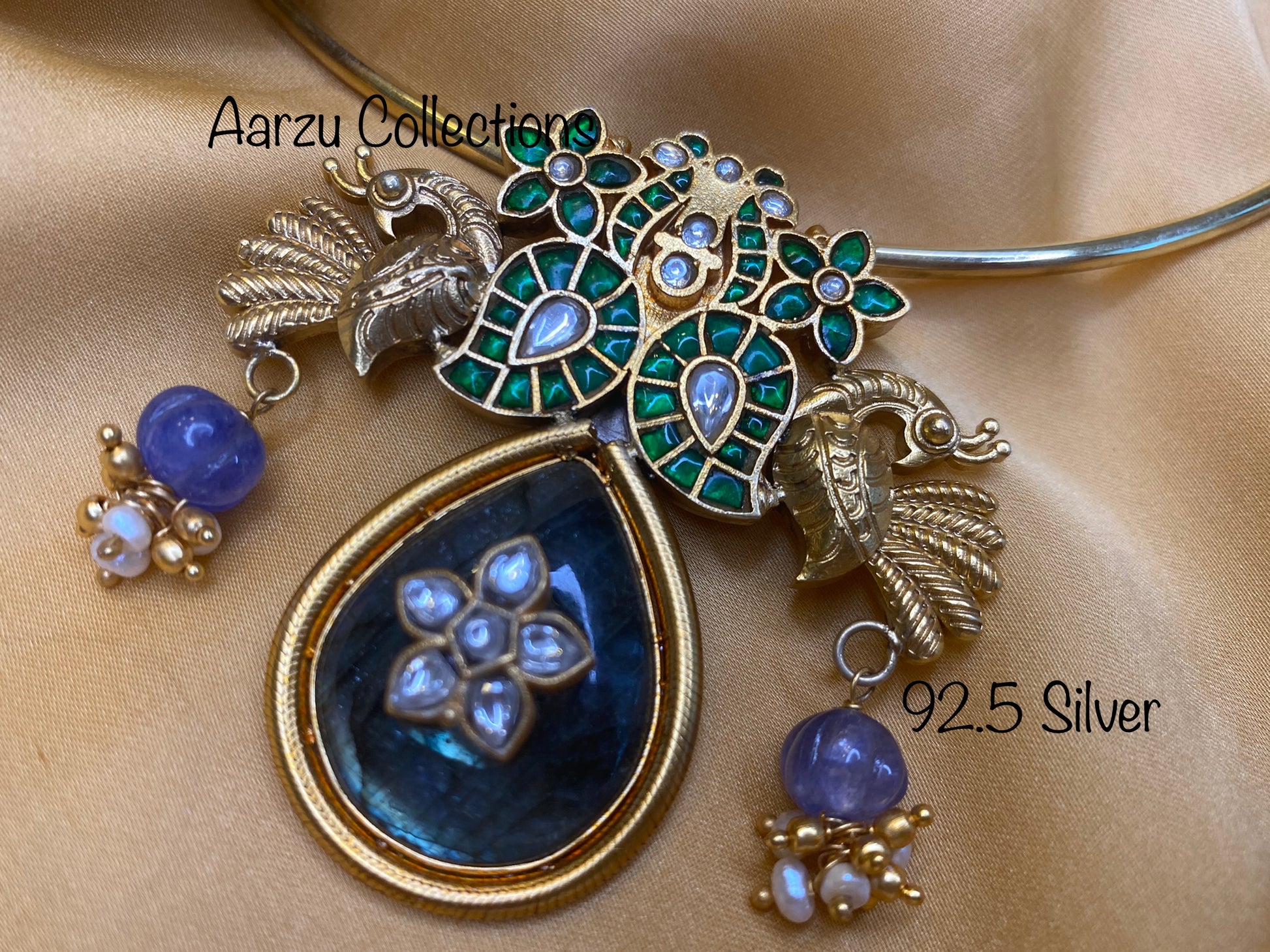 92.5 Silver Fusion collection hasli with pendant - 67 gms