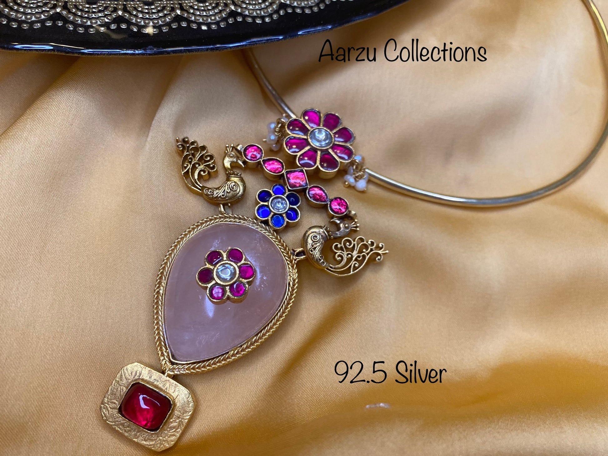 92.5 Silver Fusion collection hasli with pendant - 73 gms
