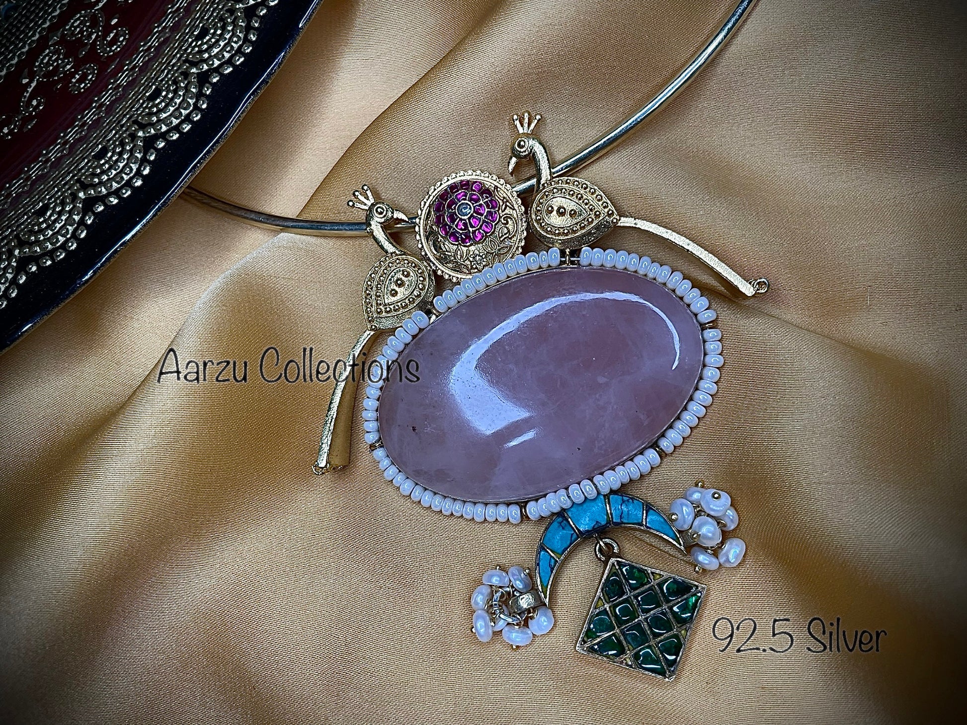 92.5 Silver Fusion collection hasli with pendant - 85 gms