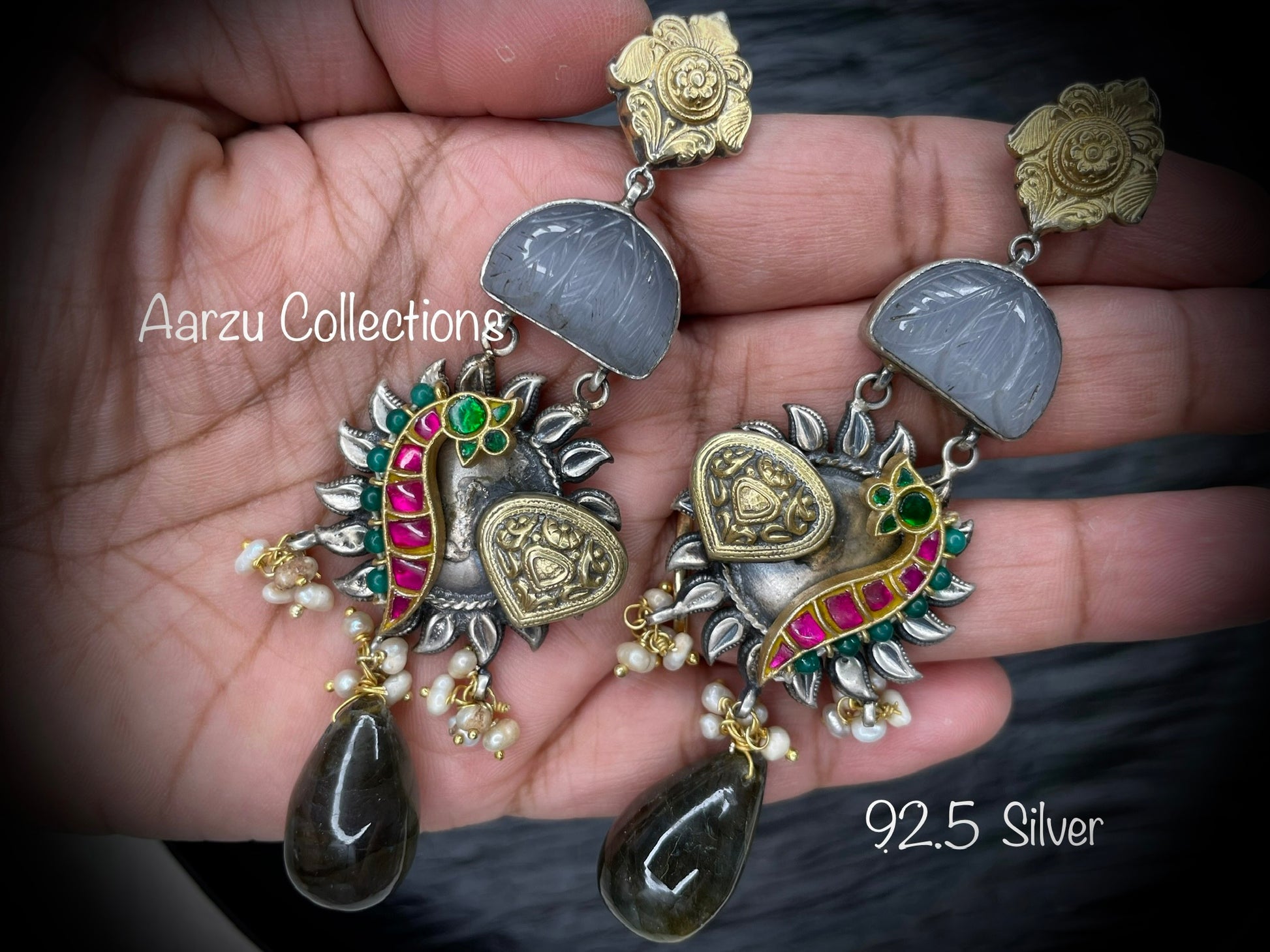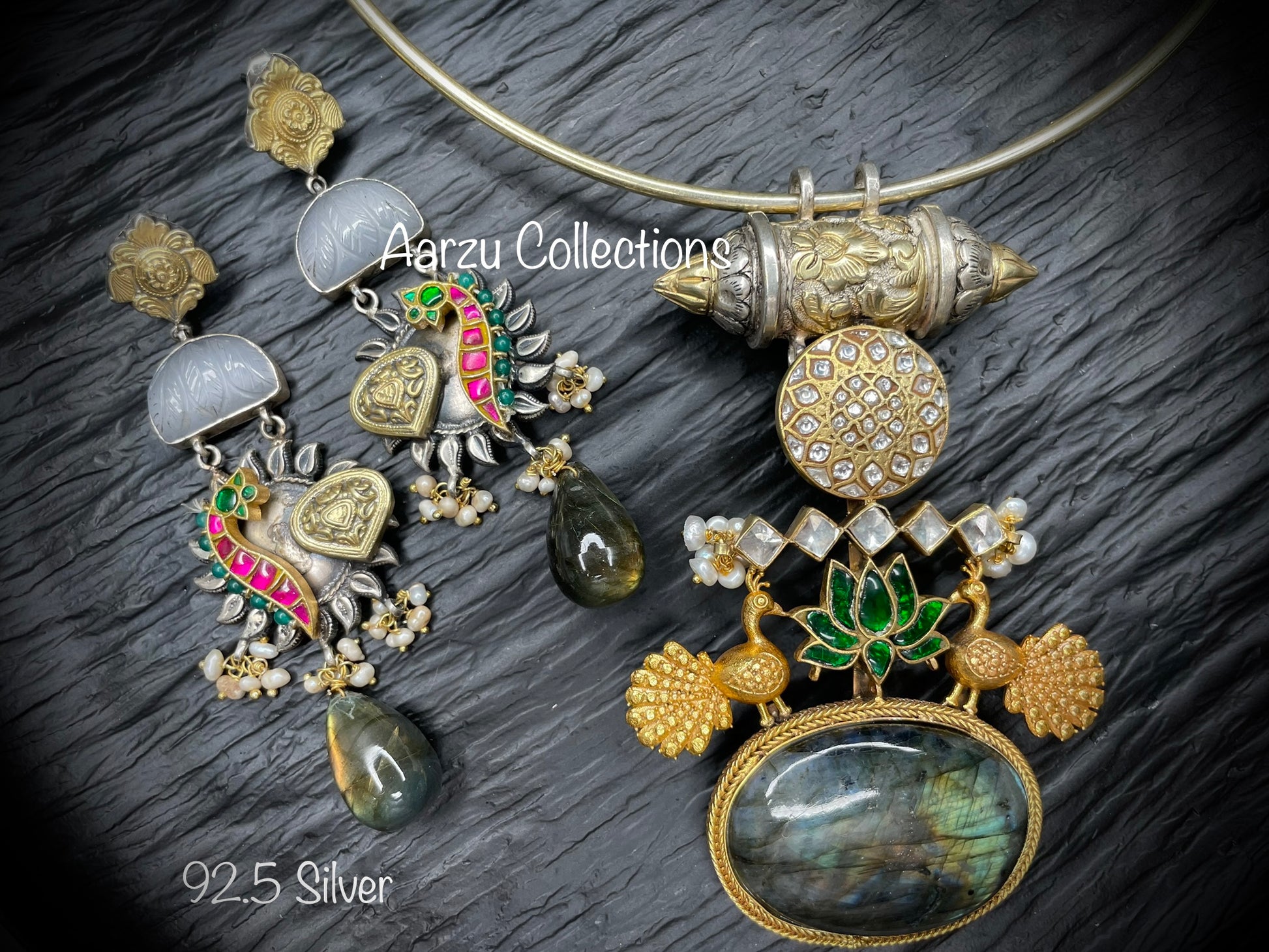 92.5 Silver Fusion collection hasli with Dual tone pendant and Earrings -