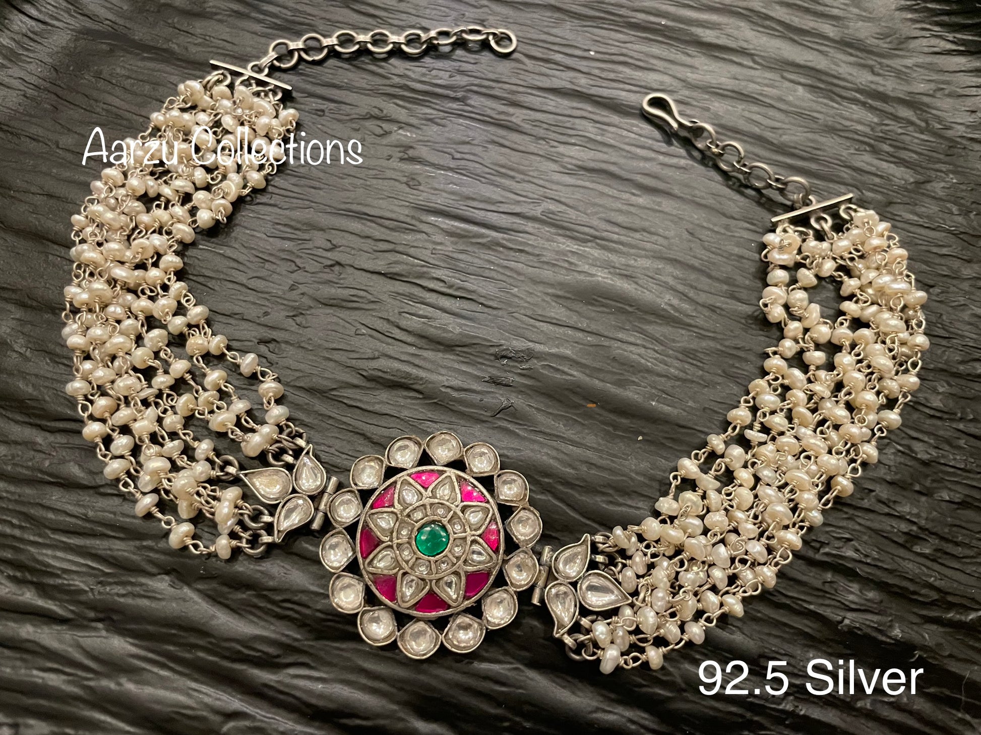 92.5 Silver Fusion collection pearl and kundan choker - 49 gms
