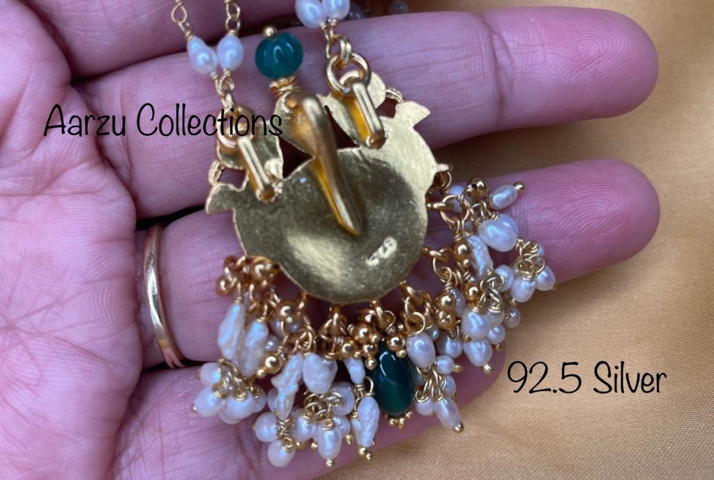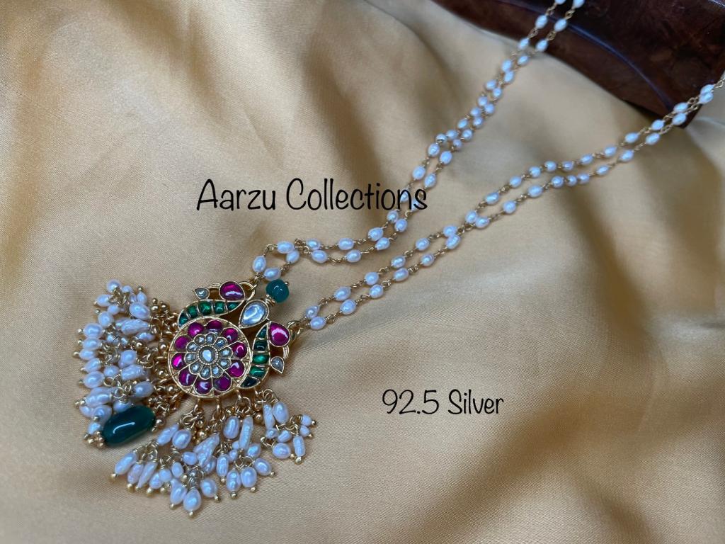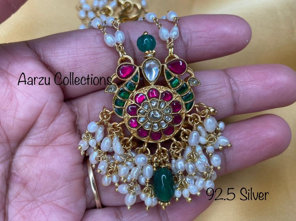 92.5 Silver Kundan Jadau pendant with pearl chain - 32 gms
