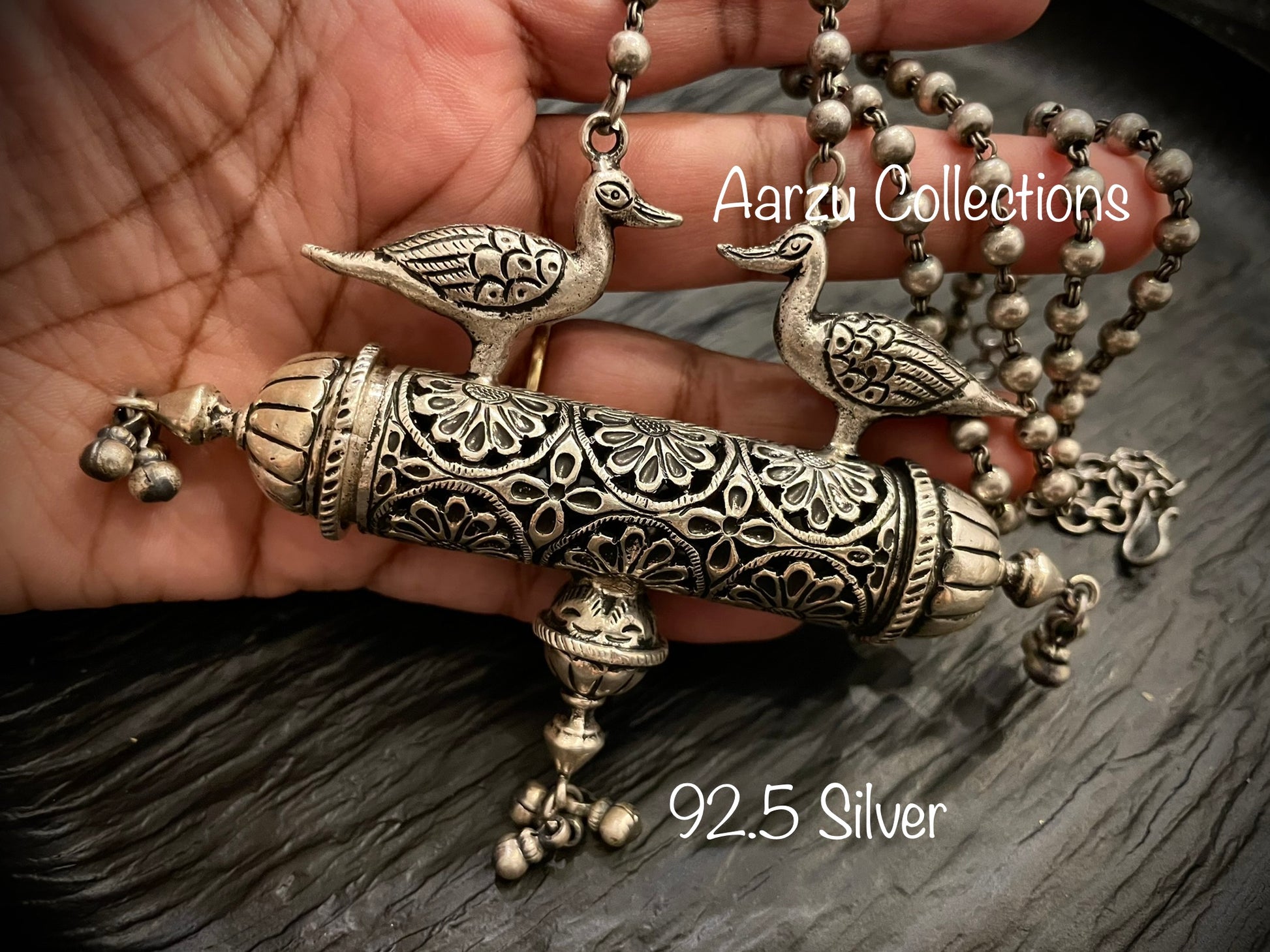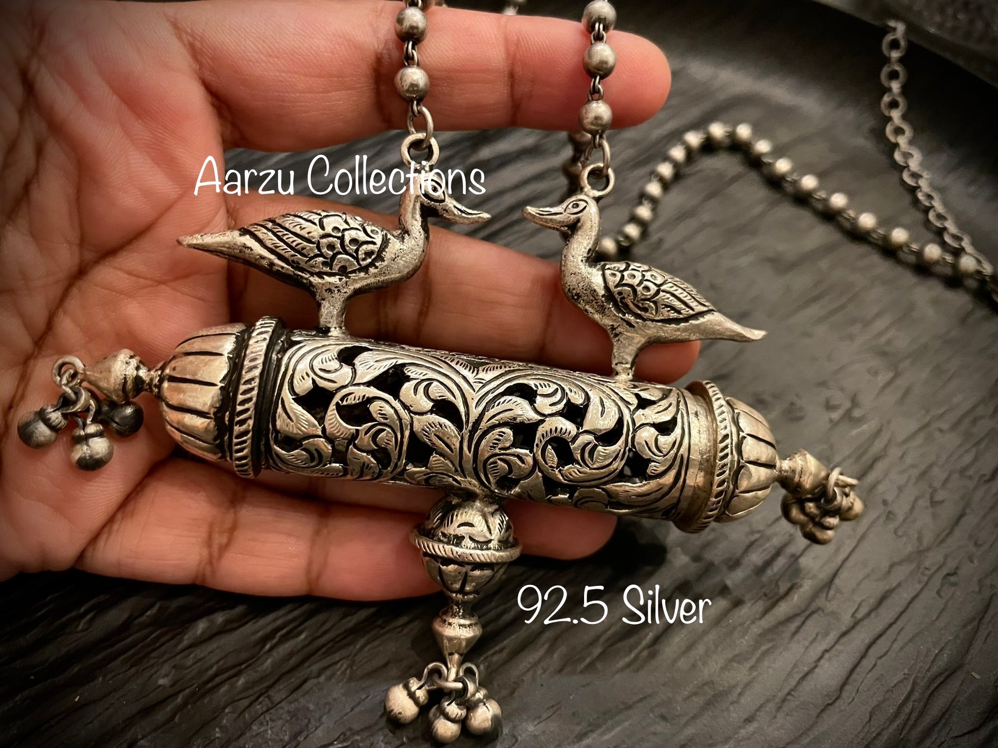 92.5 Silver mala with reversible pendant - 123gms