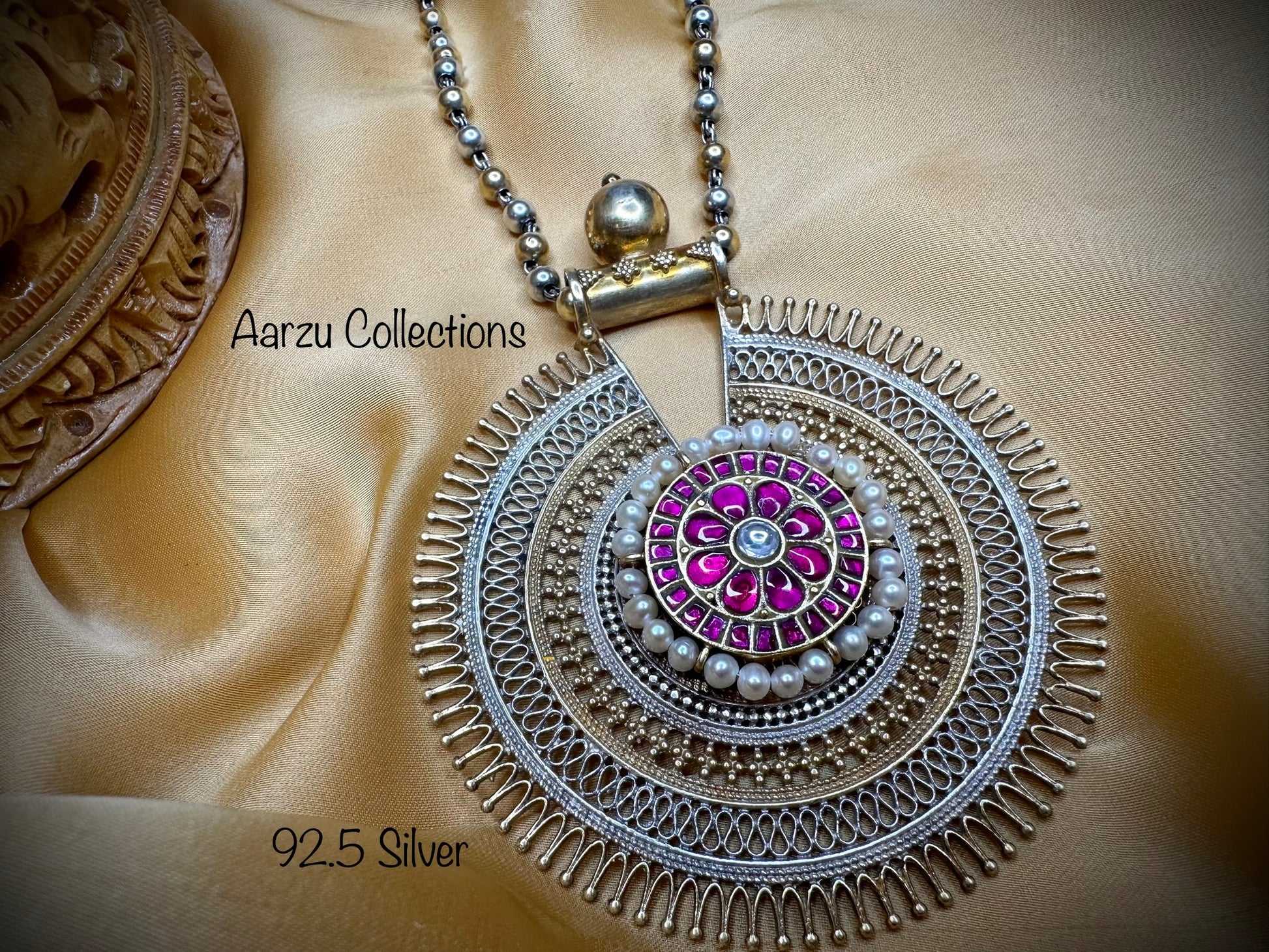 92.5 Silver Dual Tone Necklace with matar mala - 78g