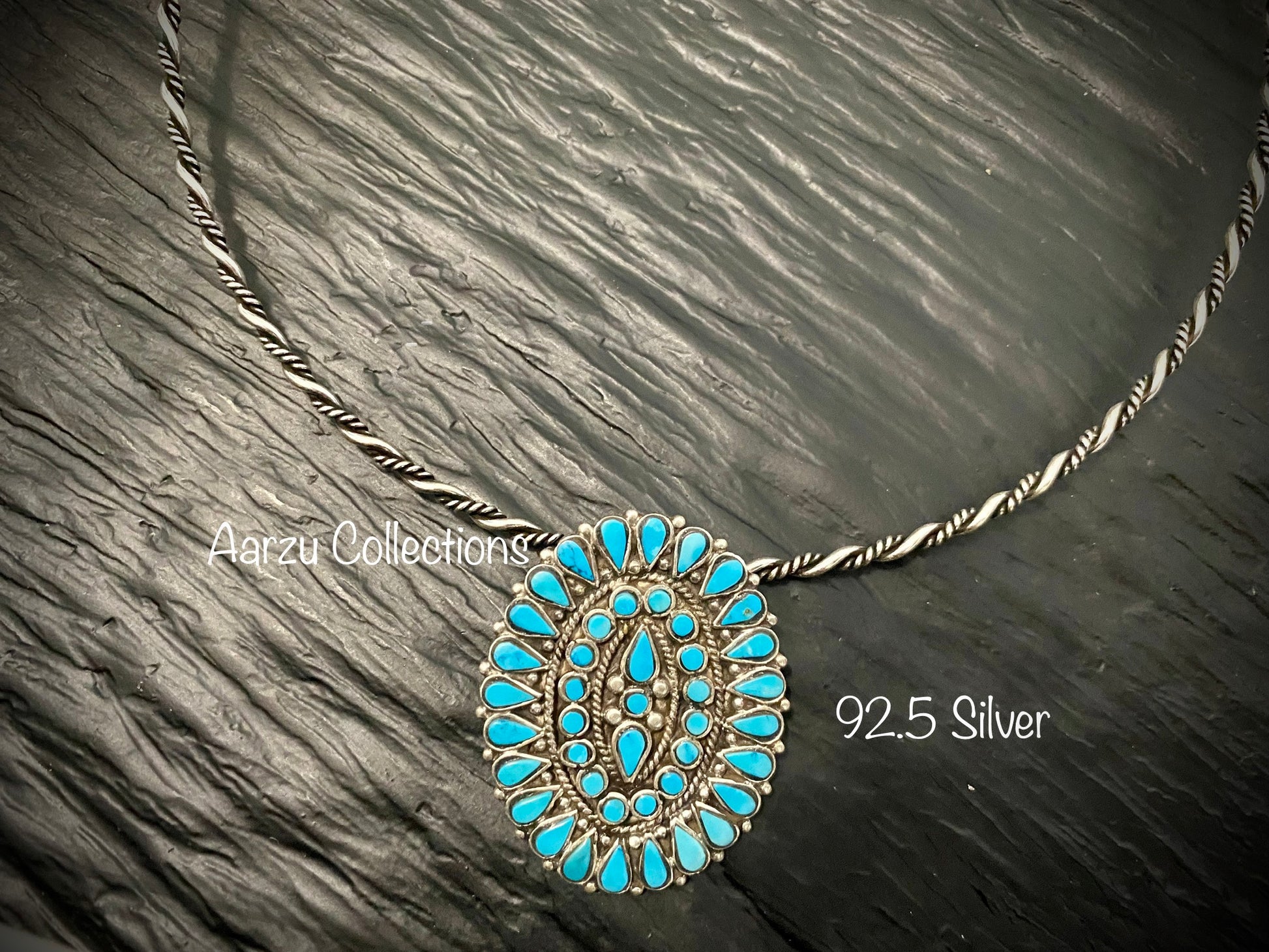 92.5 Silver Turquoise pendant with hasli - 36 gms