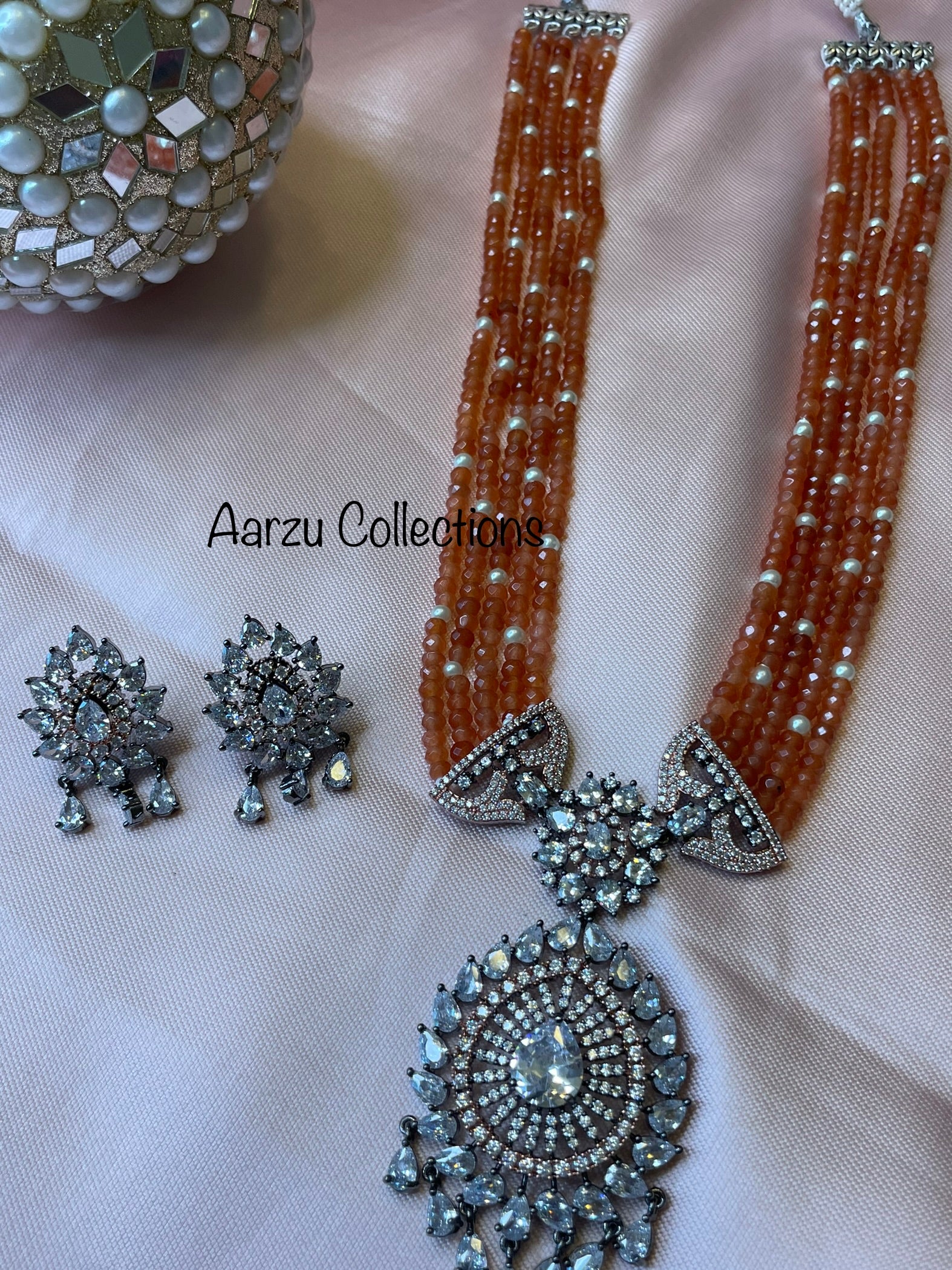 American Diamond Necklace and Earrings Set with Rosewick Finish