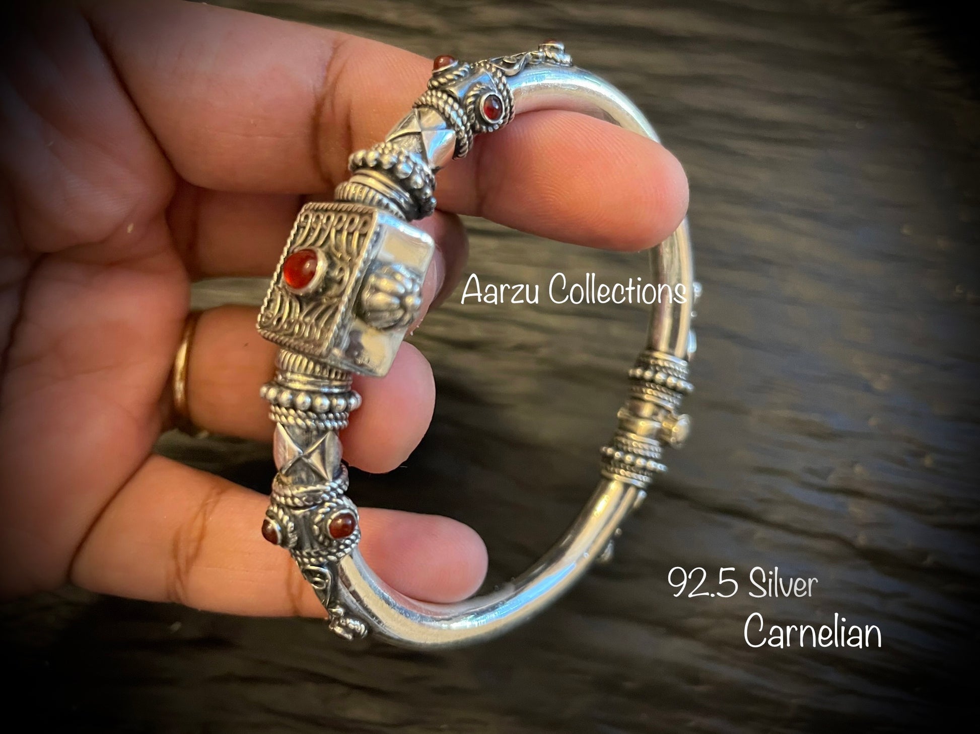 Contemporary 92.5 Silver openable kada - Carnelian-37 gms