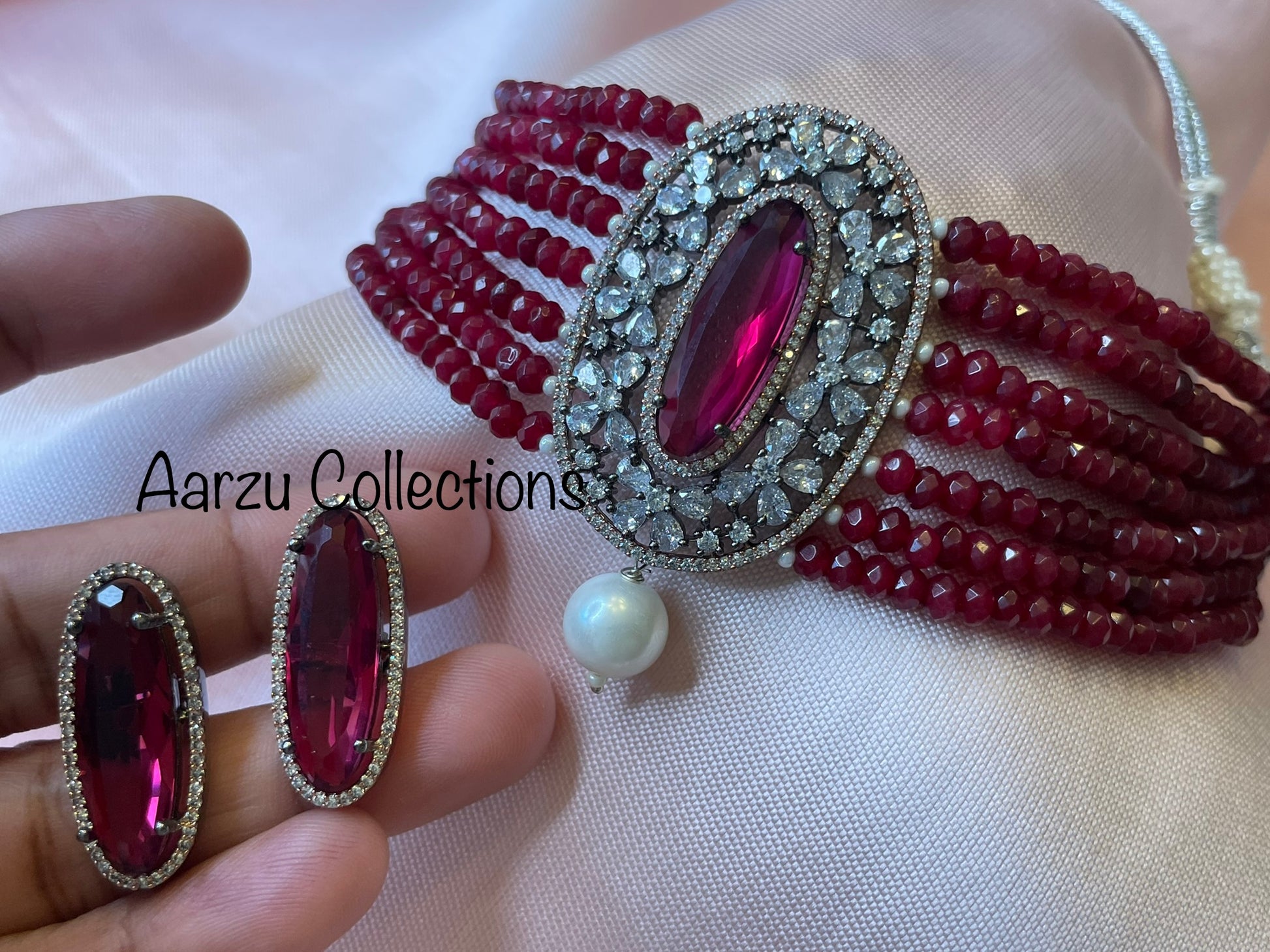 Contemporary American Diamond Choker and Earrings Set with Rosewick Finish