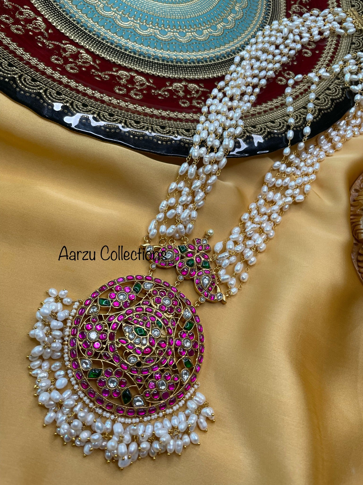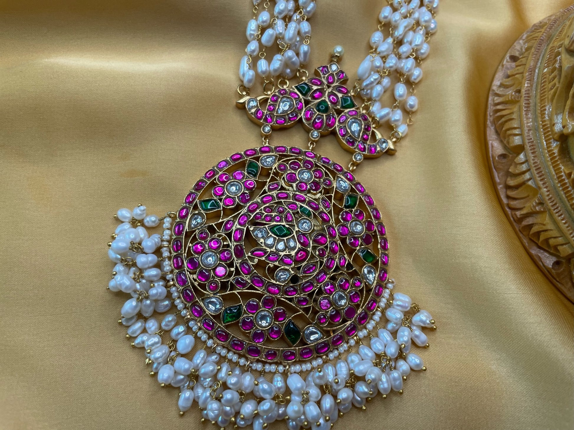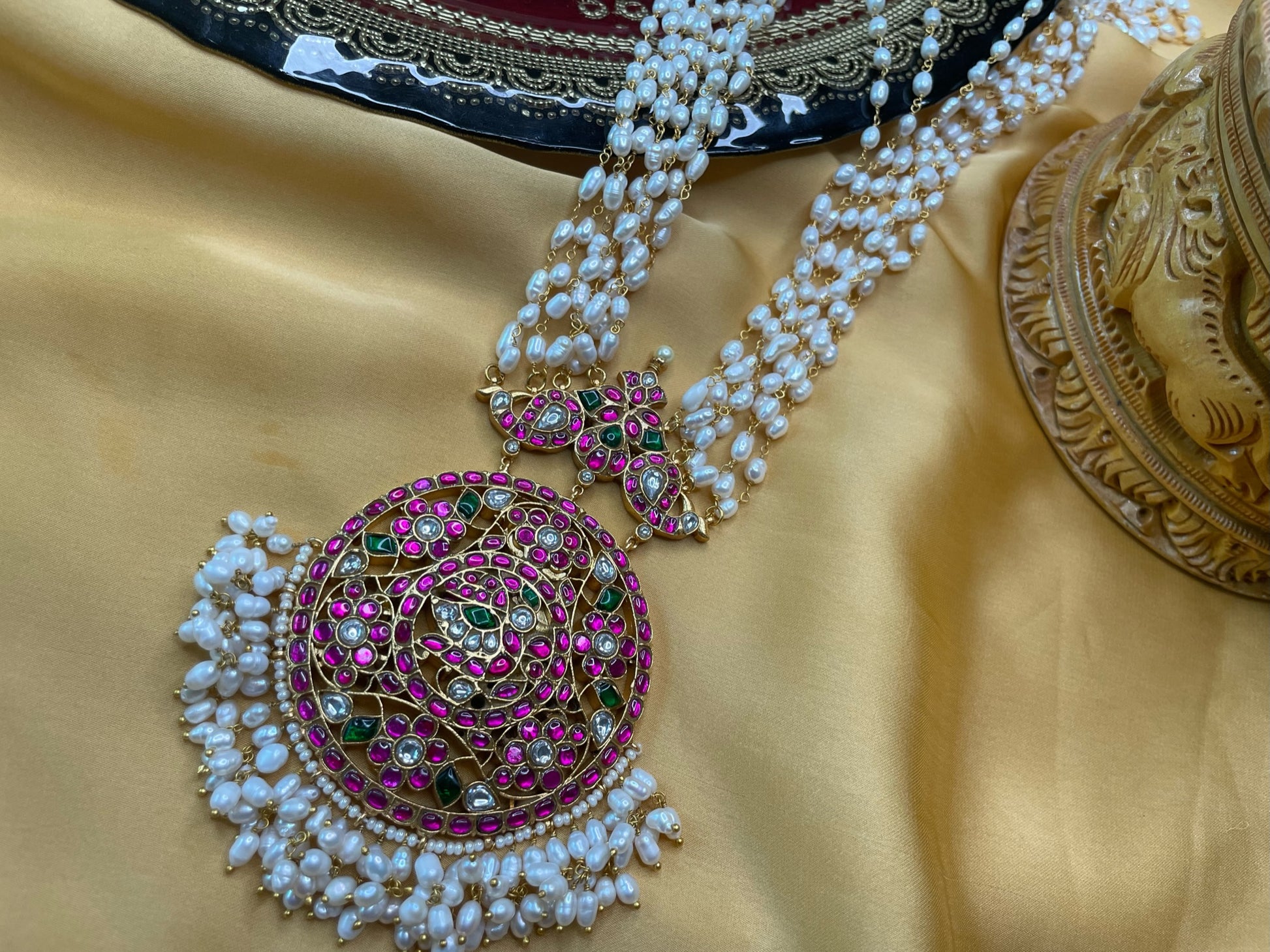Kundan Jadau pearl mala with statement pendant