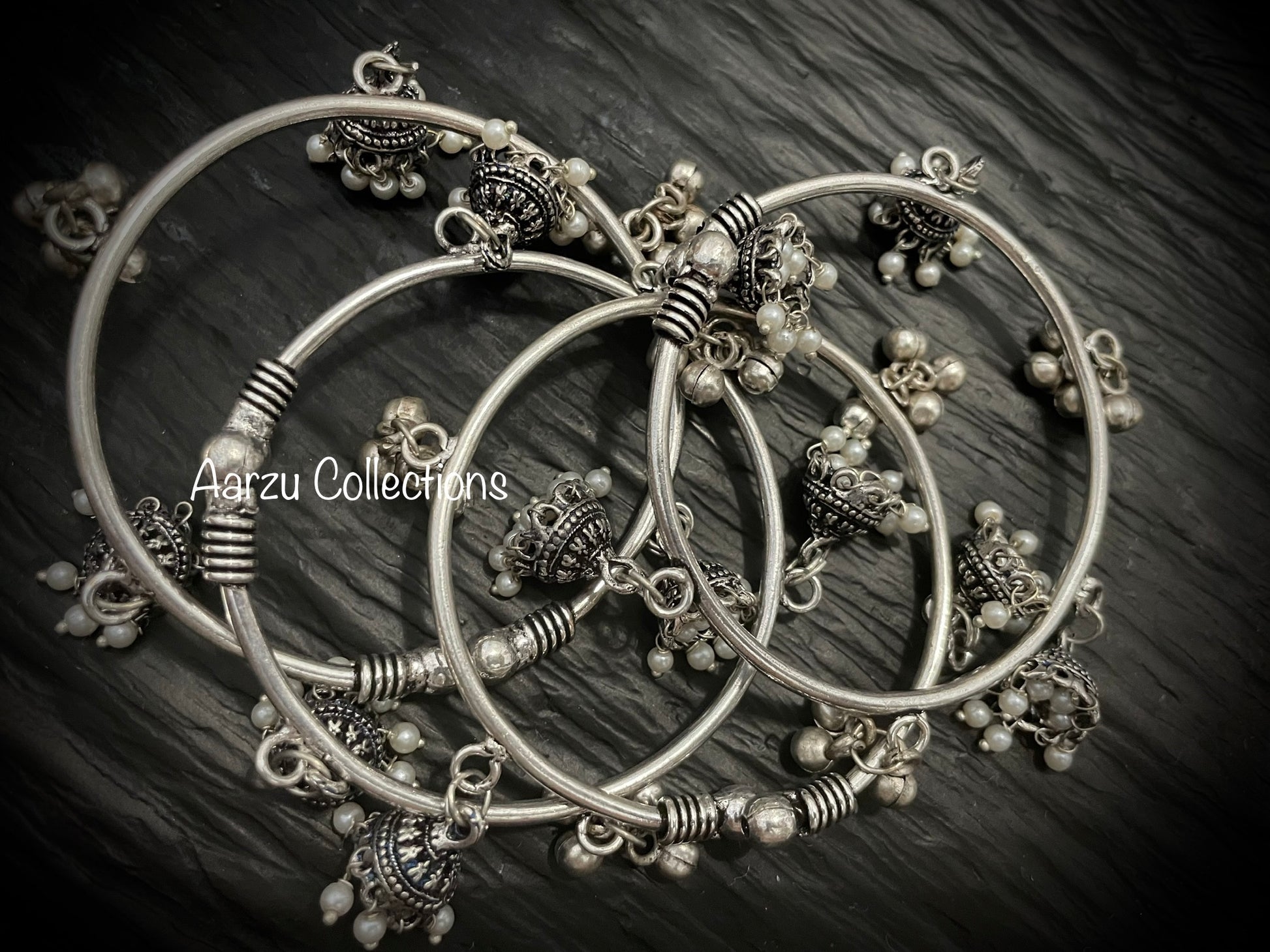 German Silver adjustable jhumka bangles - set of 4