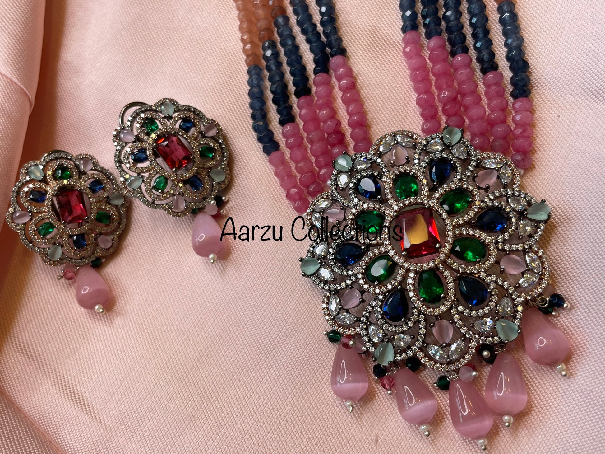 Hydro Beads and American Diamonds Necklace and Earring Set