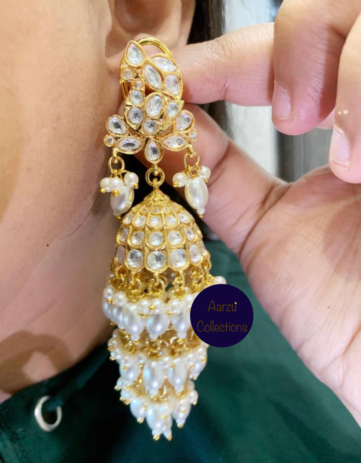 Kundan and pearls statement jhumkas