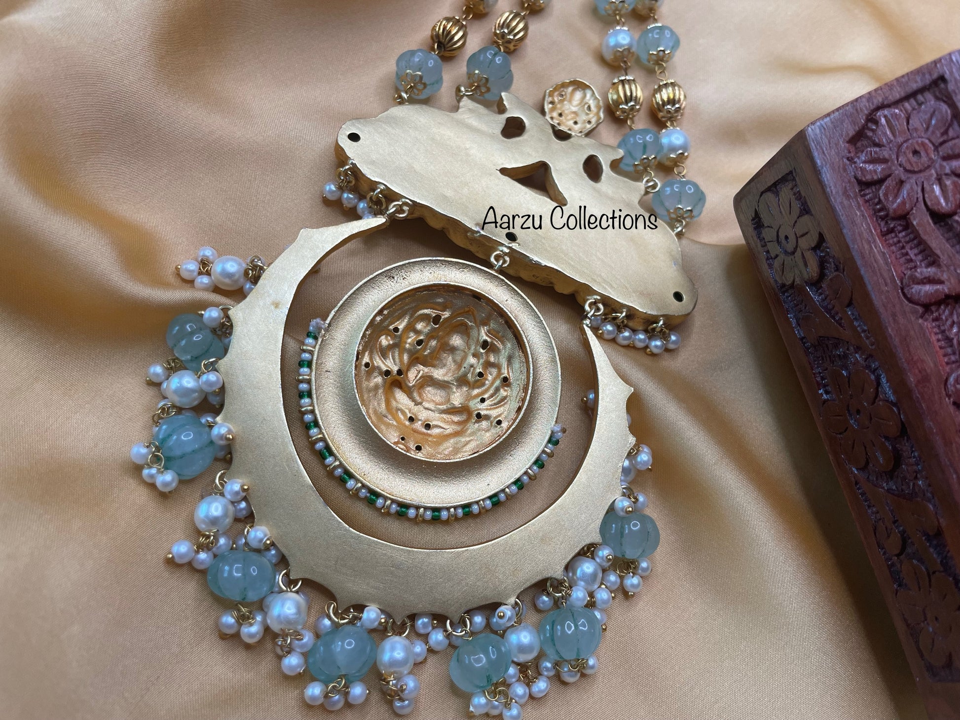 Kundan Jadau long statement temple mala - mint
