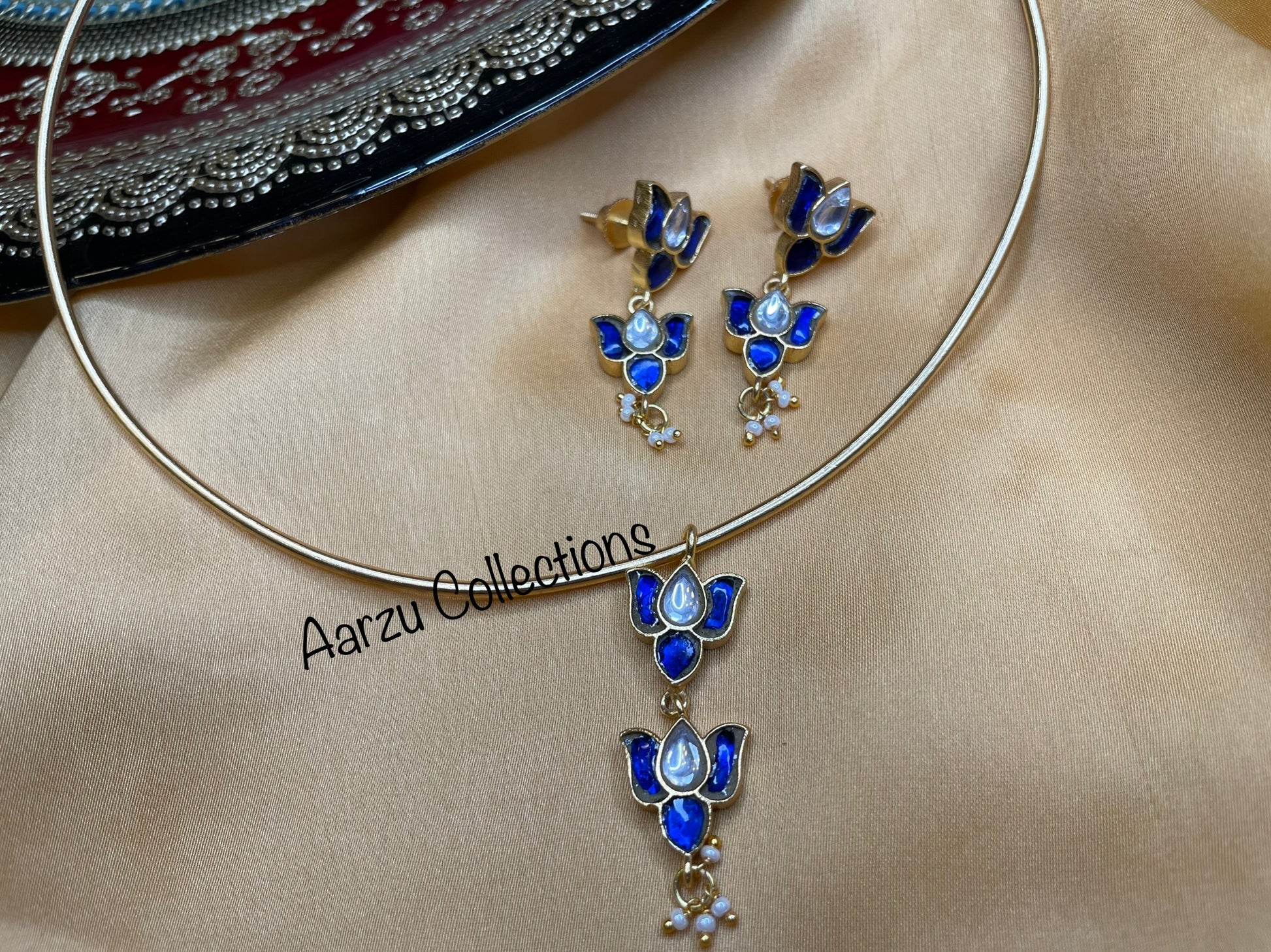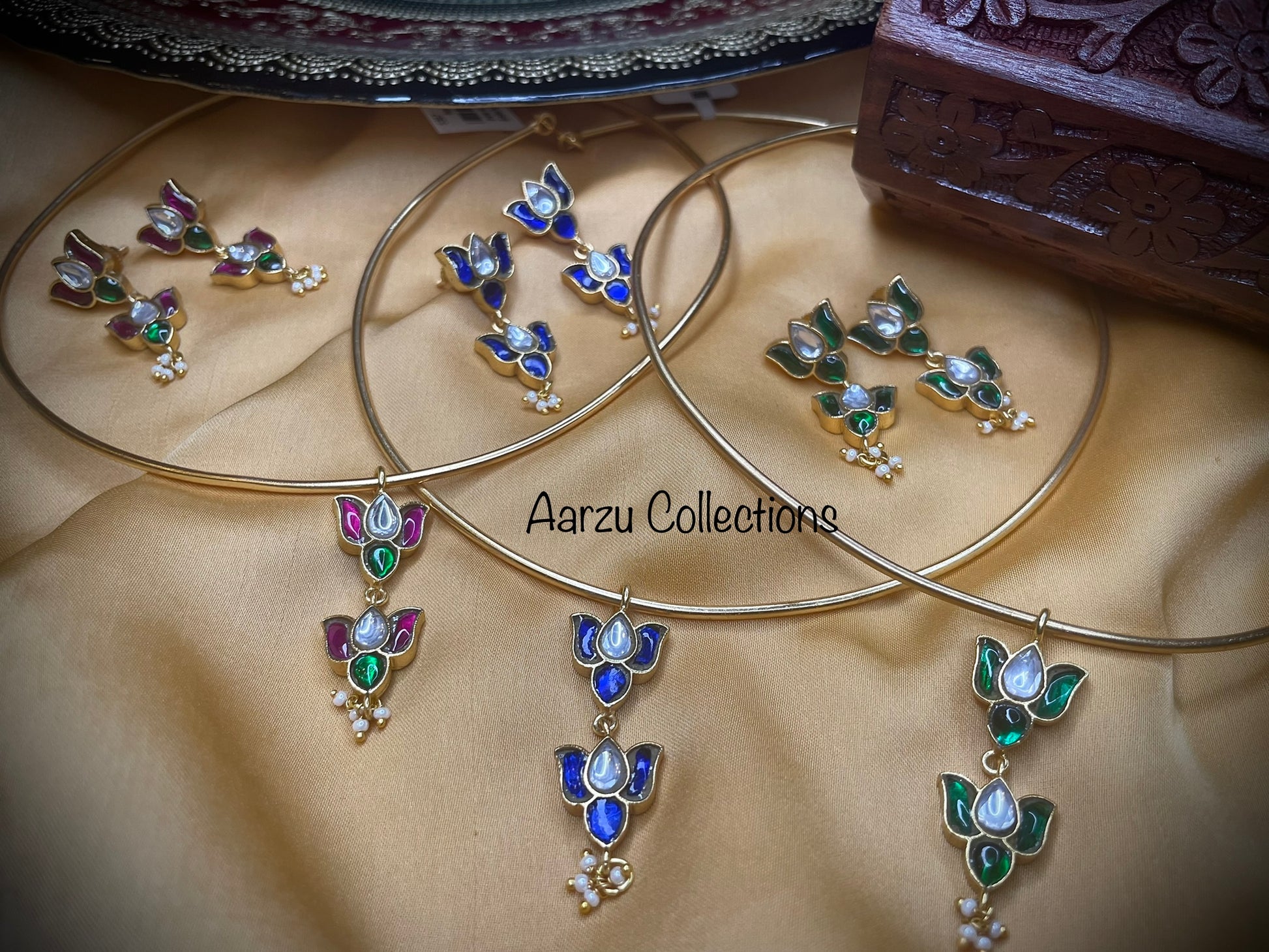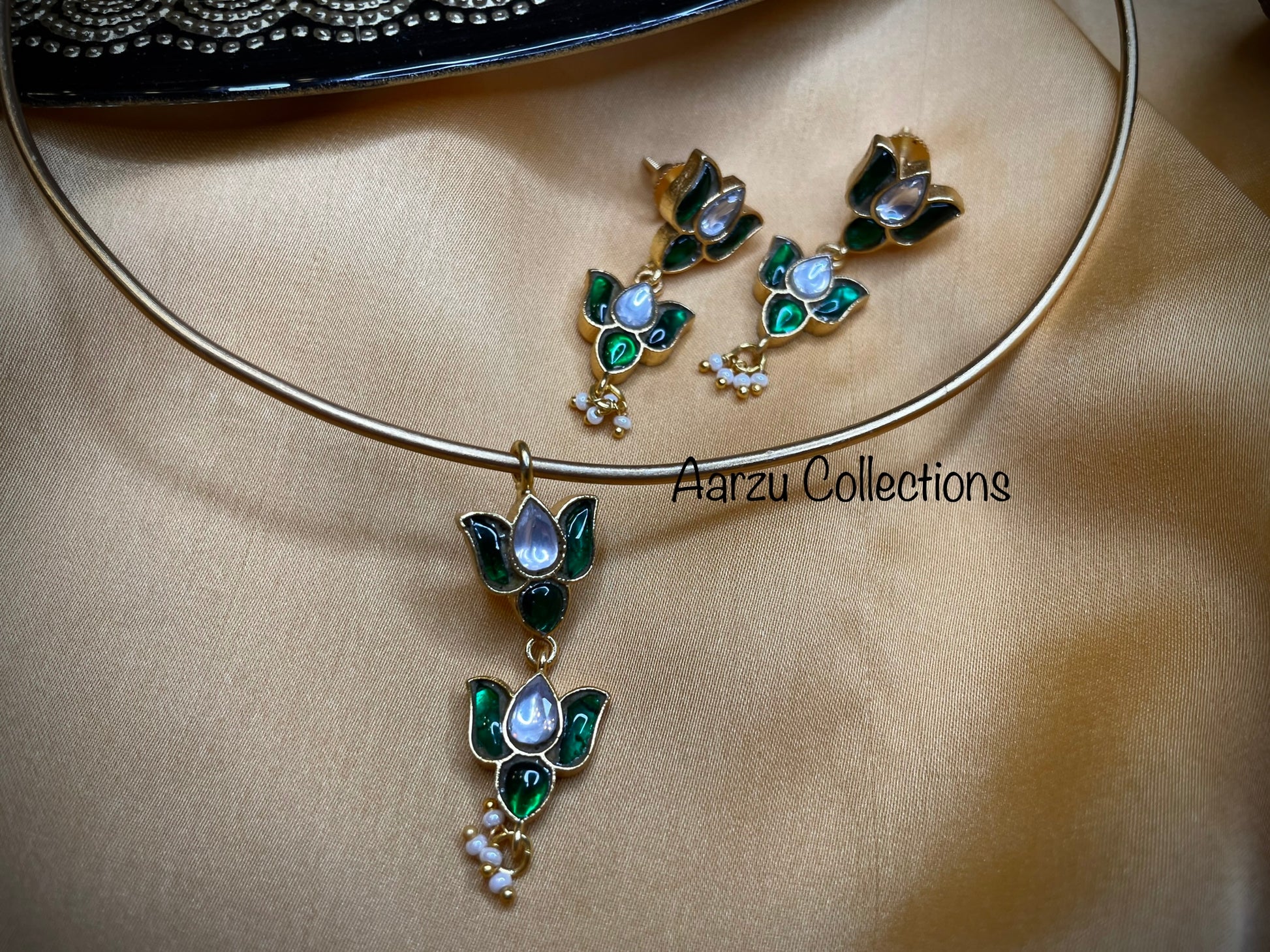 Kundan Jadau lotus hasli pendant set